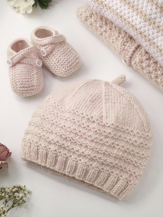 Bonnet et chaussons bébé Amandier à tricoter.