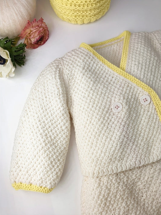 Cardigan bébé Jasmin à tricoter.