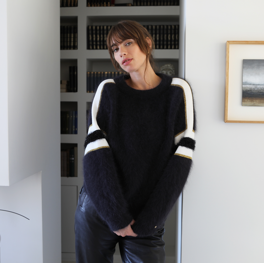 Vous pouvez commander ce grand classique du vestiaire féminin à tricoter sur cette page, ou vous faire livrer un de nos pulls col rond directement confectionné dans notre atelier.