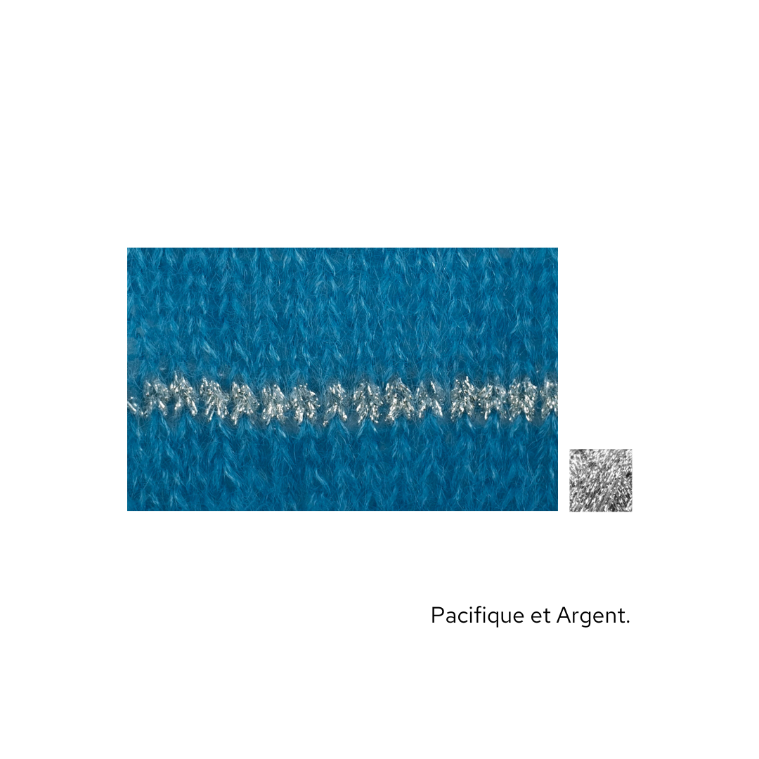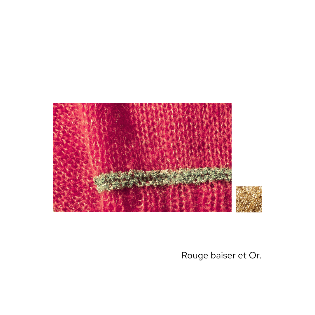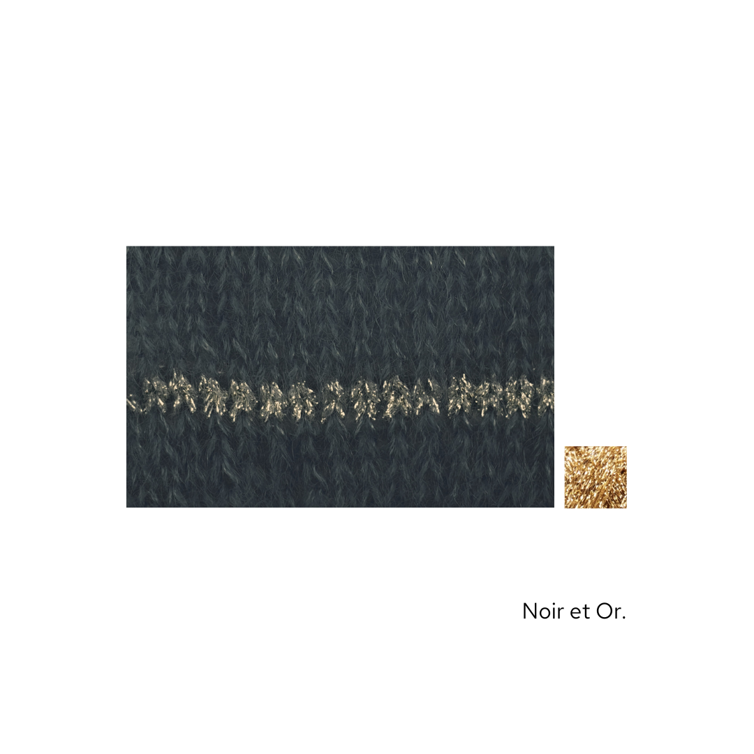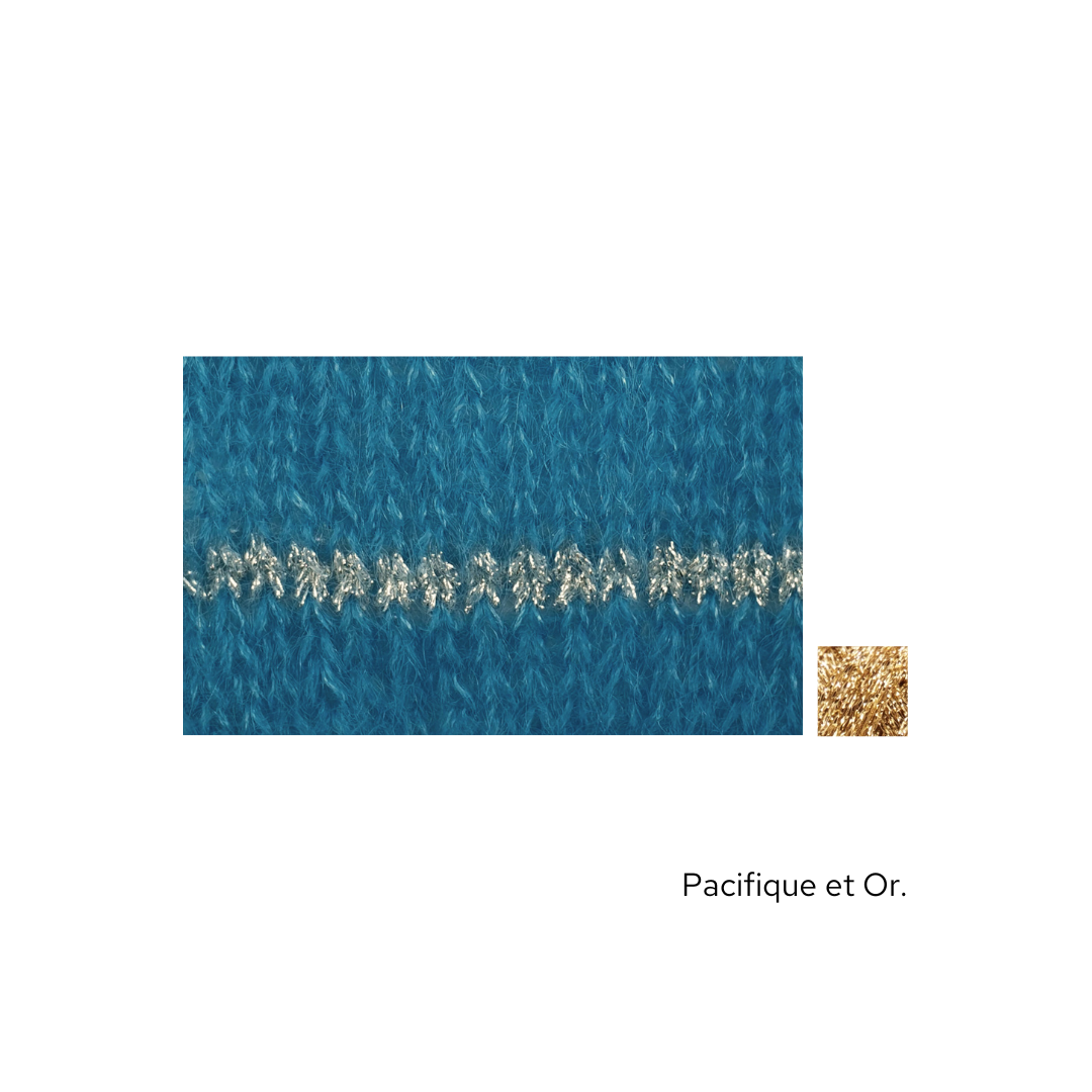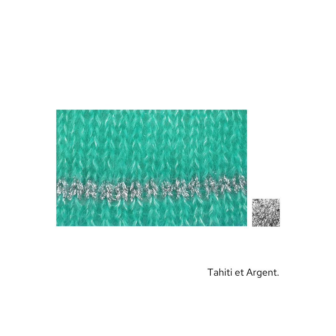 Ce modèle est idéal à emporter dans une valise, pour les soirs d'été mais aussi à porter quelque soit la saison. Il est tricoté en Honey Moon fil simple agrémenté de notre fil Eclipse Or ou Argent en fonction des couleurs.