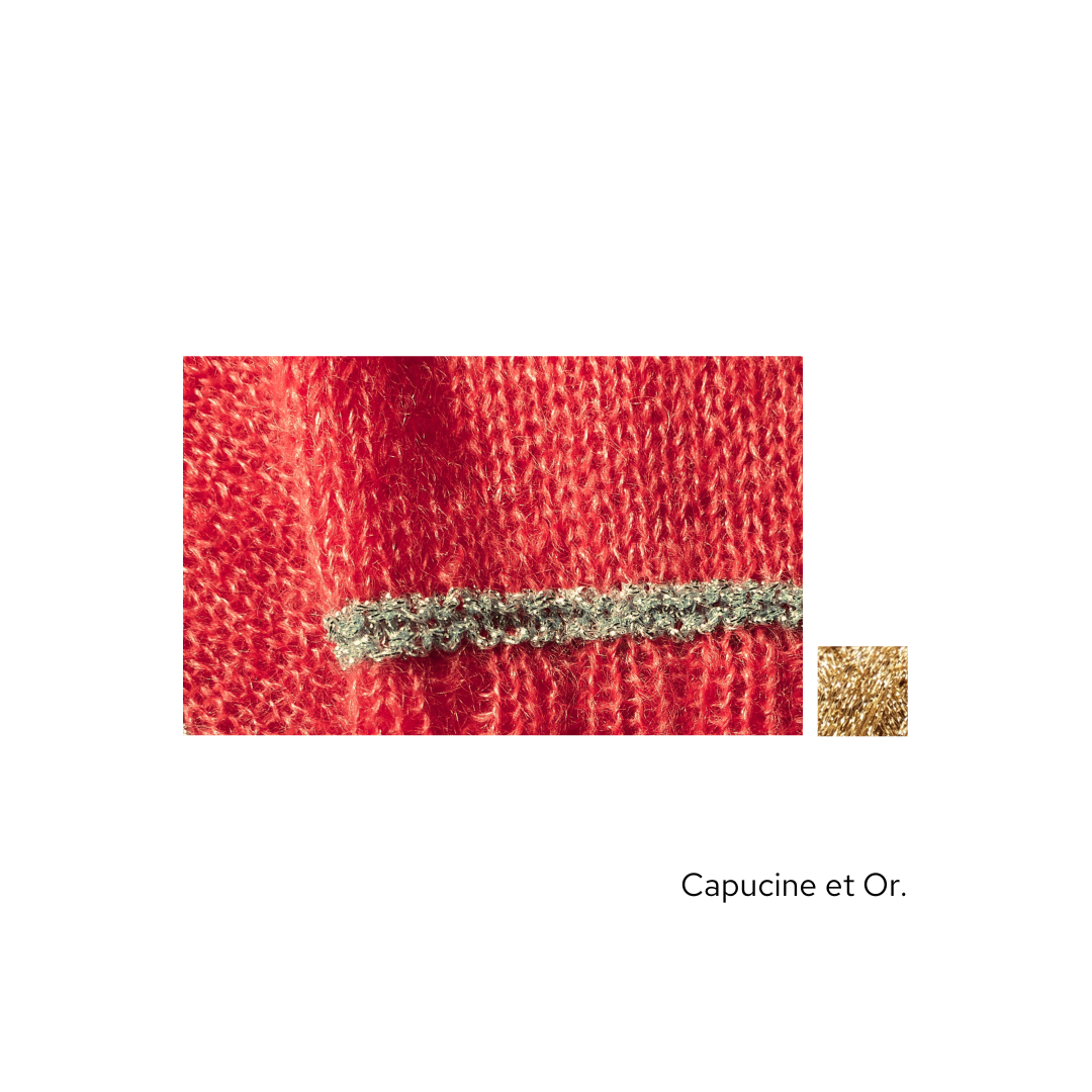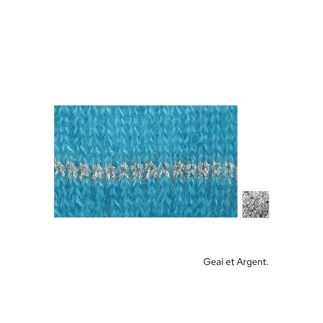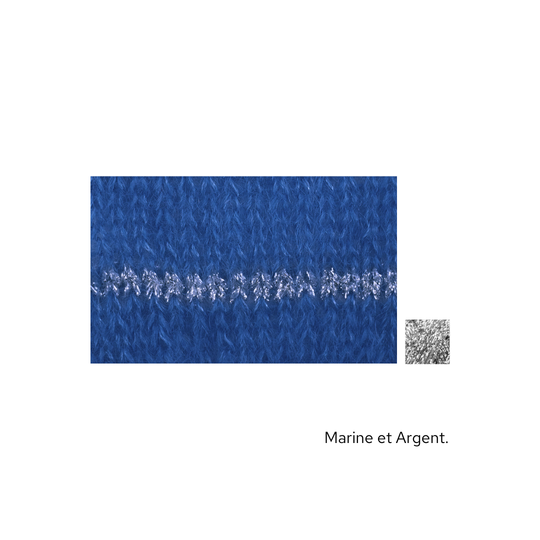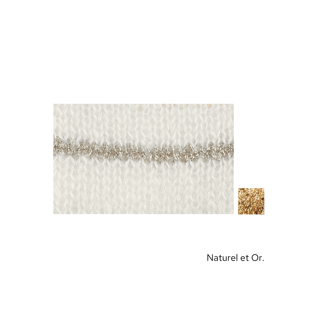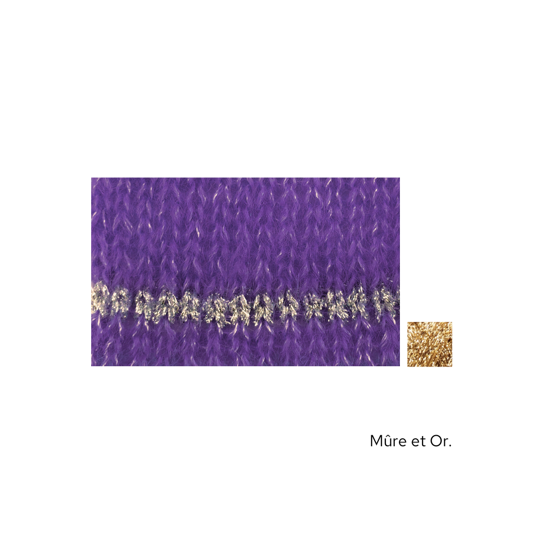 Ce modèle est idéal à emporter dans une valise, pour les soirs d'été mais aussi à porter quelque soit la saison. Il est tricoté en Honey Moon fil simple agrémenté de notre fil Eclipse Or ou Argent en fonction des couleurs.