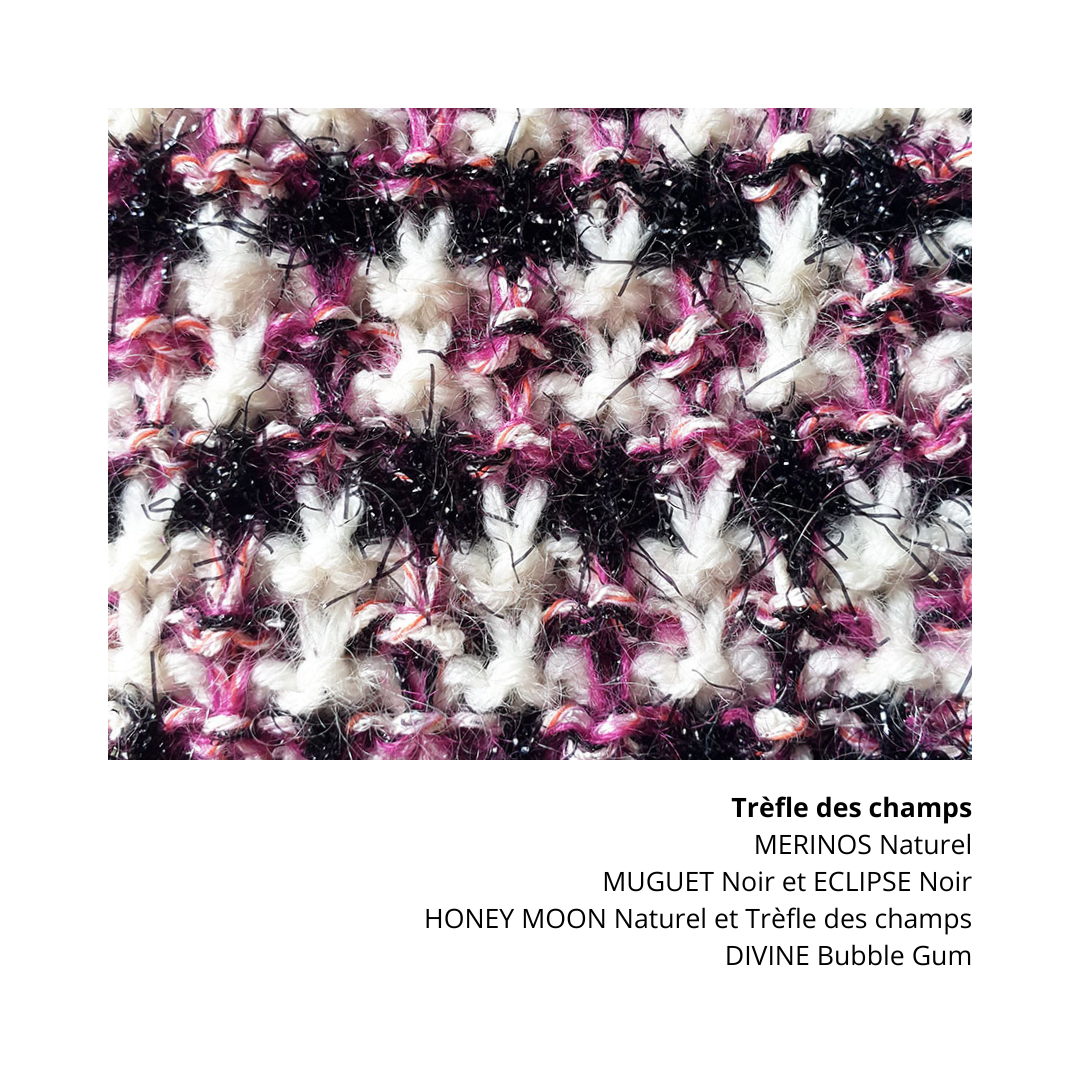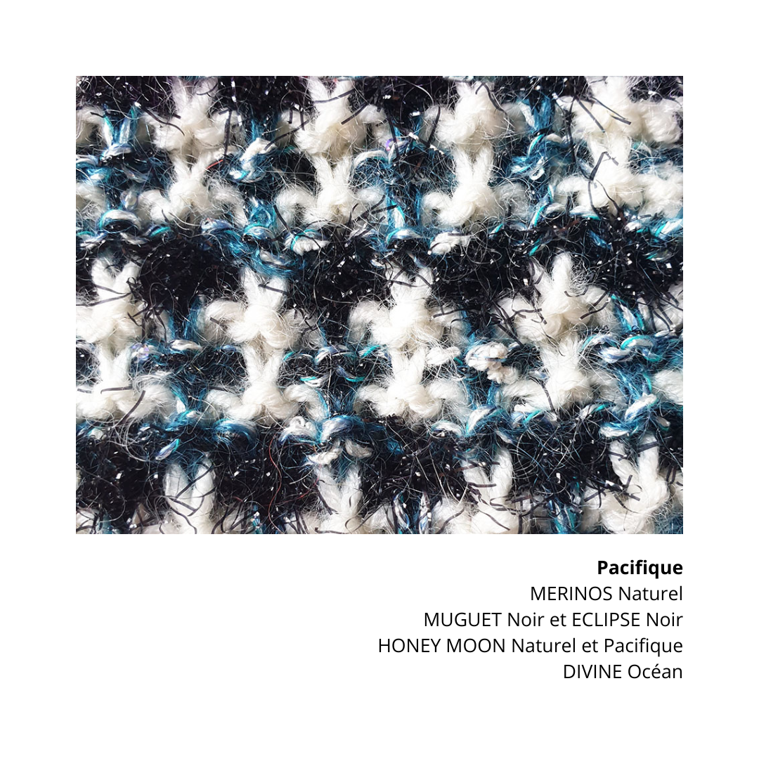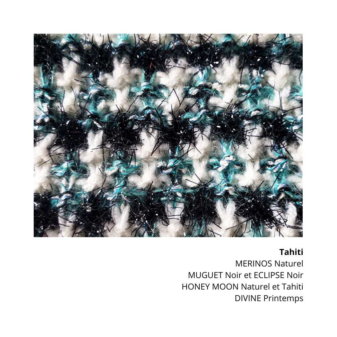 Découvrez le charme sophistiqué du point fantaisie du modèle Brooklyn créé par notre styliste Anne, qui joue habilement avec les matières et les textures. Les emmanchures et l'encolure sont mises en valeur par quelques rangées de notre fil noir brillant, le Muguet.