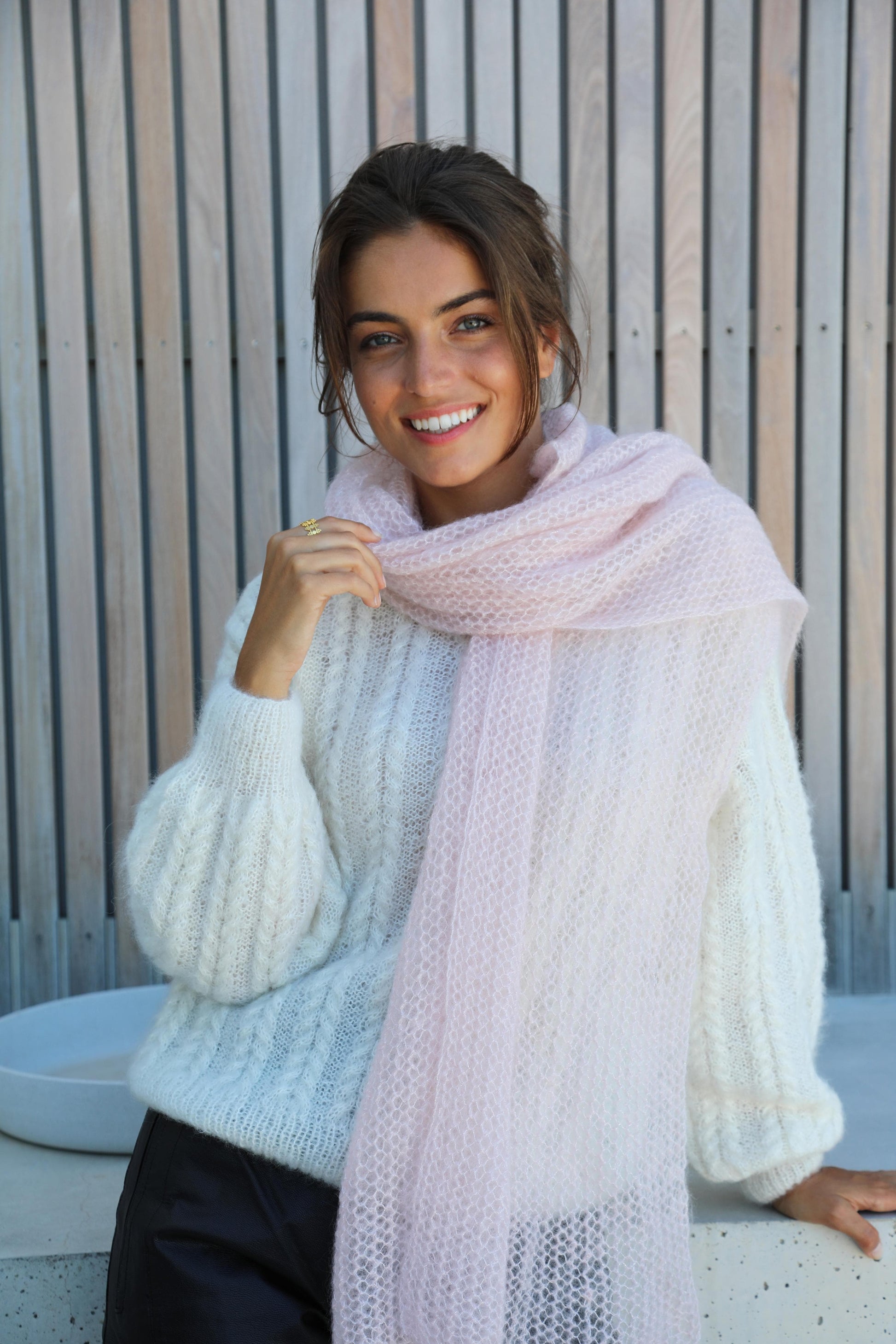 L'accessoire coup de coeur à tricoter avec un fil fin de grande qualité composé de super Kid Mohair, de Soie et d'une petit fil brillant pour une touche irisée discrète.