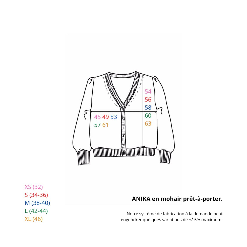Notre gilet Anika en Mohair est le gilet de tous les instants : à l'endroit, c'est un gilet facile à porter, toujours élégant grâce à ses épaules légèrement bouffantes. A l'envers, il se transforme en un pull chic et tendance agrémenté d'un très joli V dans le dos.