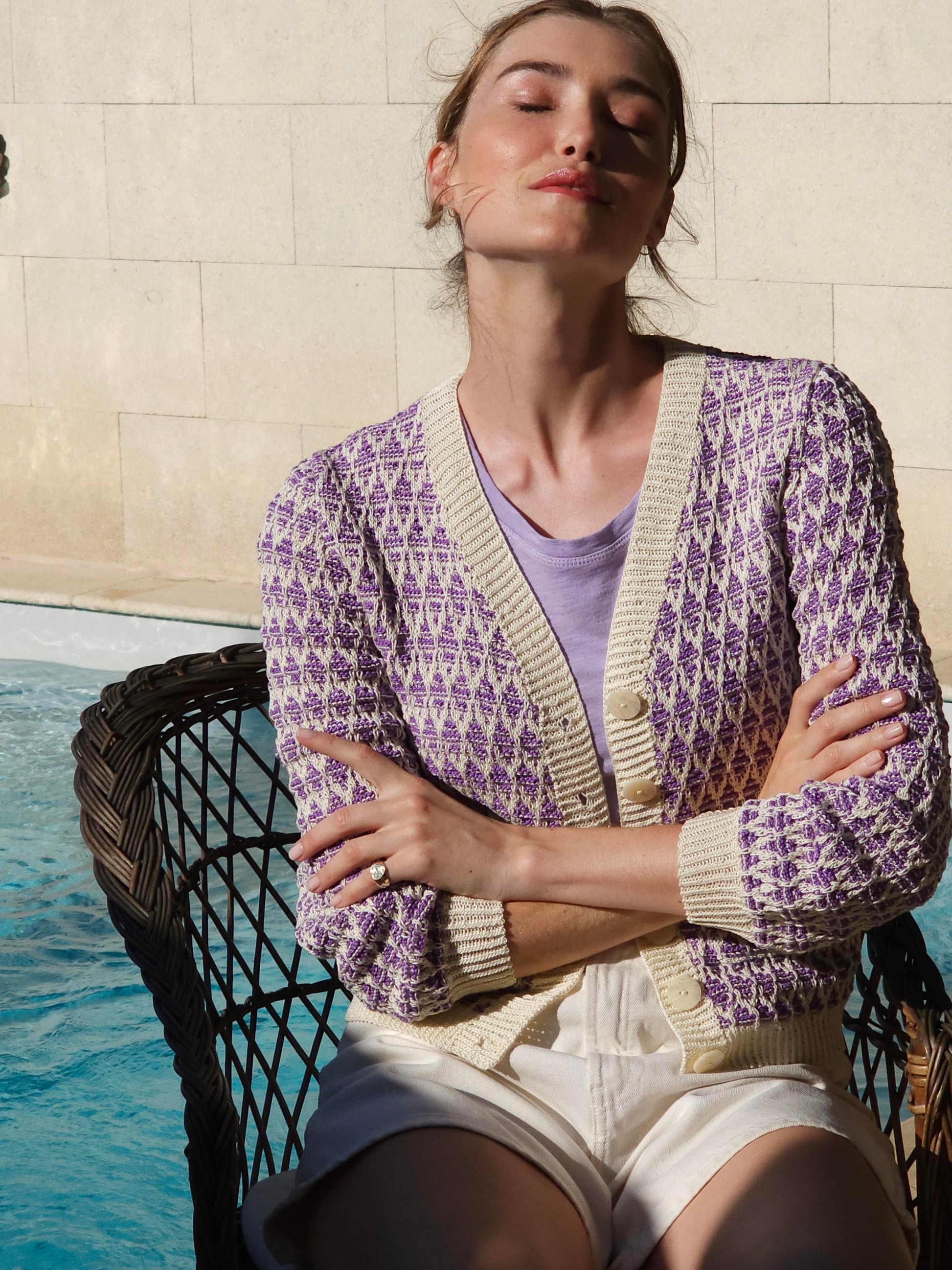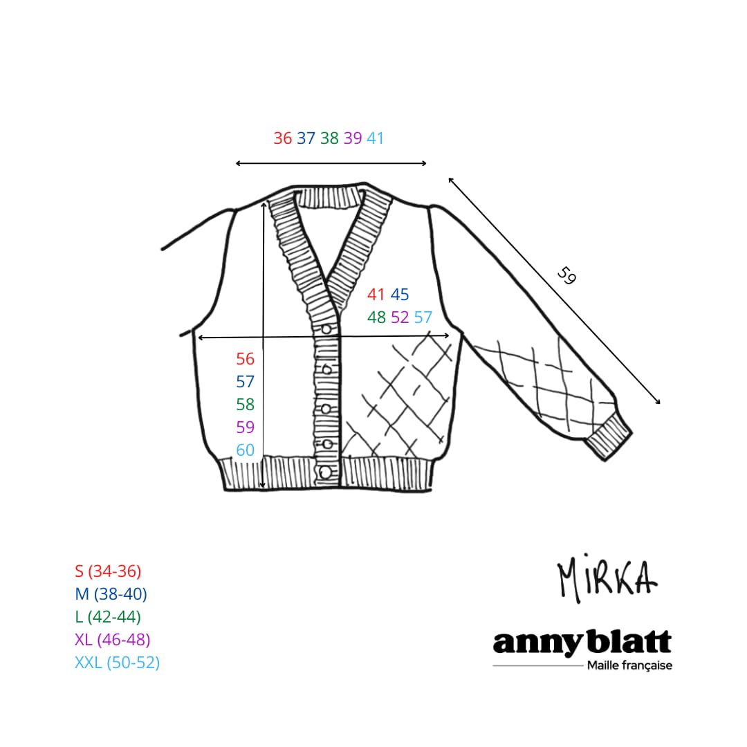 Léger et doux le gilet Mirka se tricote avec notre fil [Riviera](https://www.annyblatt.com/products/pelote-riviera-100-coton-mako) 100% Coton. Une matière réputée et agréable à porter dès l'arrivée des beaux jours. Son motif jacquard, tricoté avec deux couleurs de coton, ajoute une touche moderne qui captivera, pour sa réalisation, l'attention des tricoteurs(ses) plus expérimentés(ées).