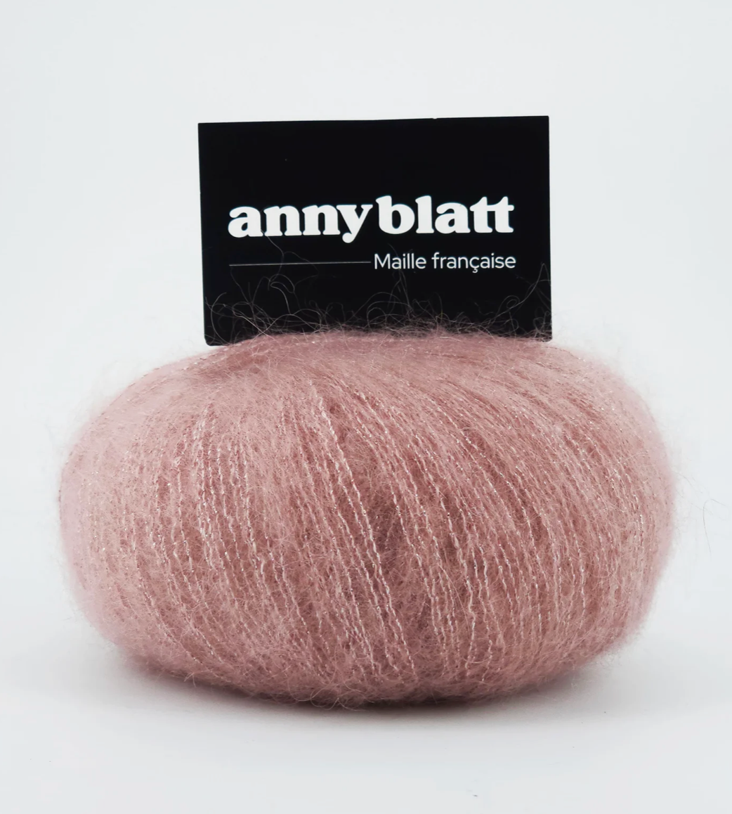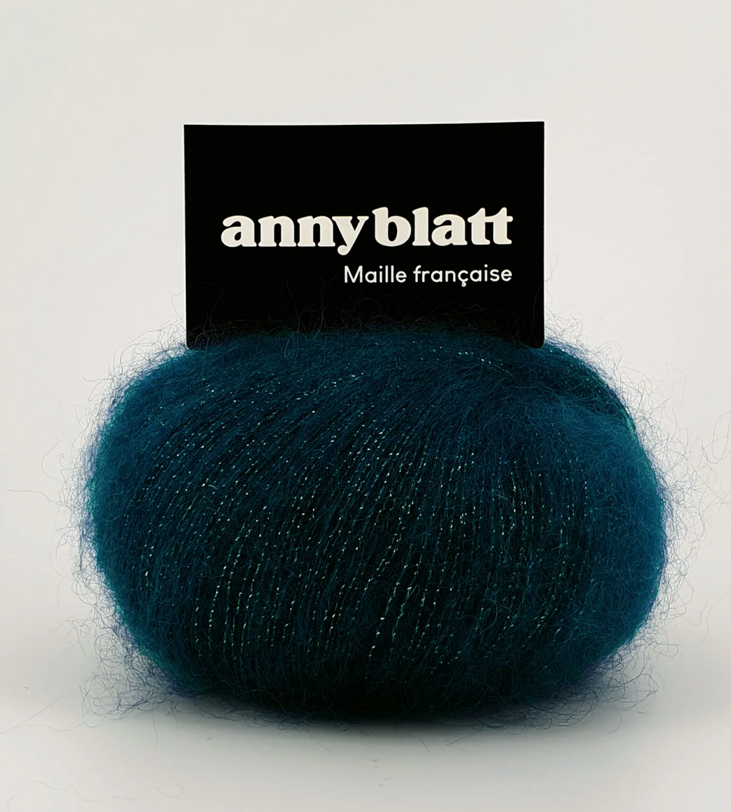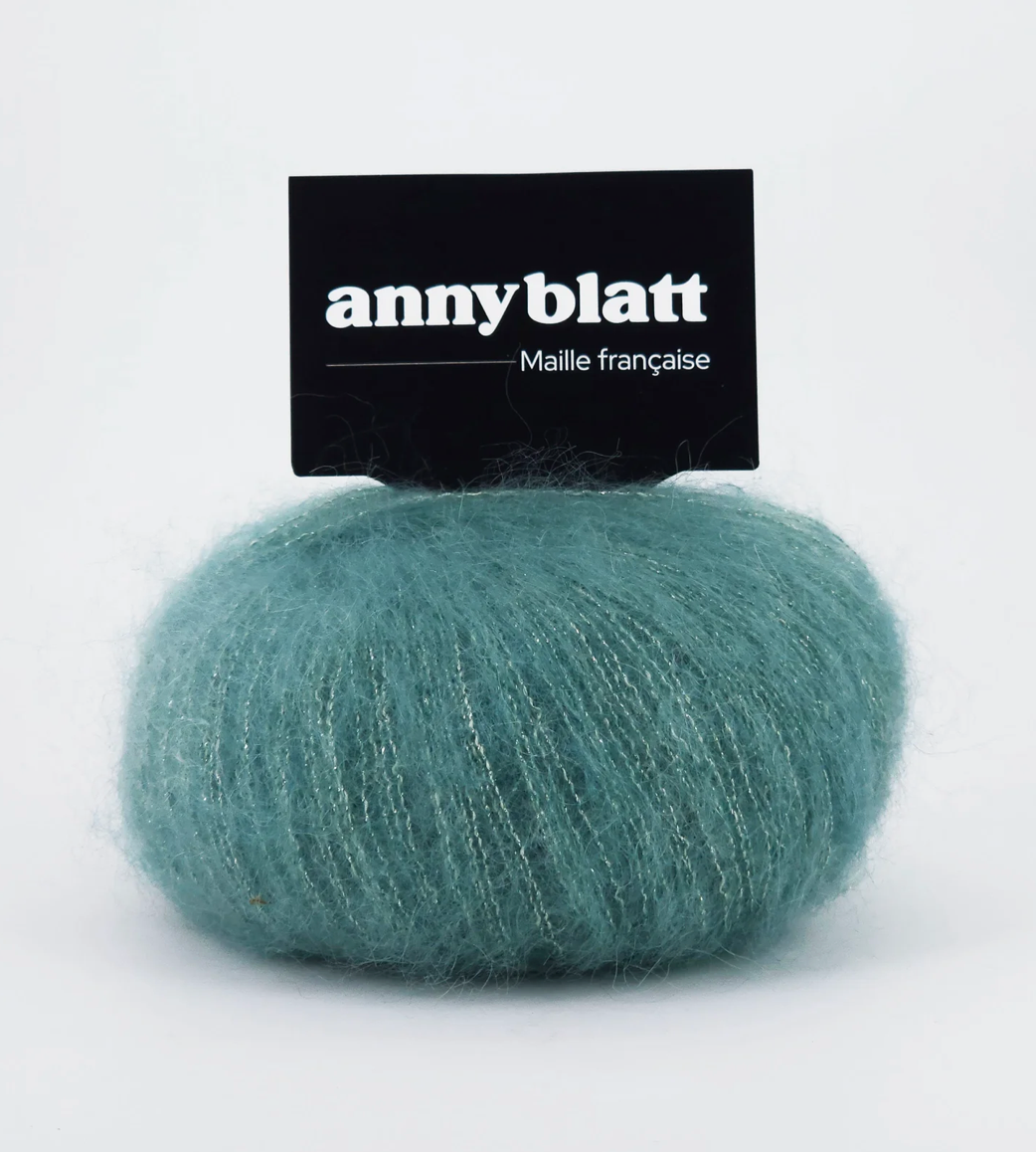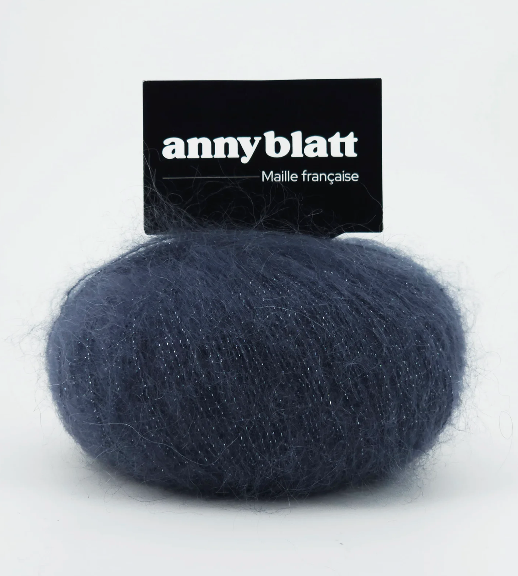 Ce modèle Anny Blatt est ici tricoté en Sirius double, notre fil irisé de super kid mohair et soie. Mais il existe aussi en Angora Douceur si vous préférez un rendu plus luxueux et plus poilu, ou en Honey Moon pour un pull moelleux et doux mais sans fil brillant.