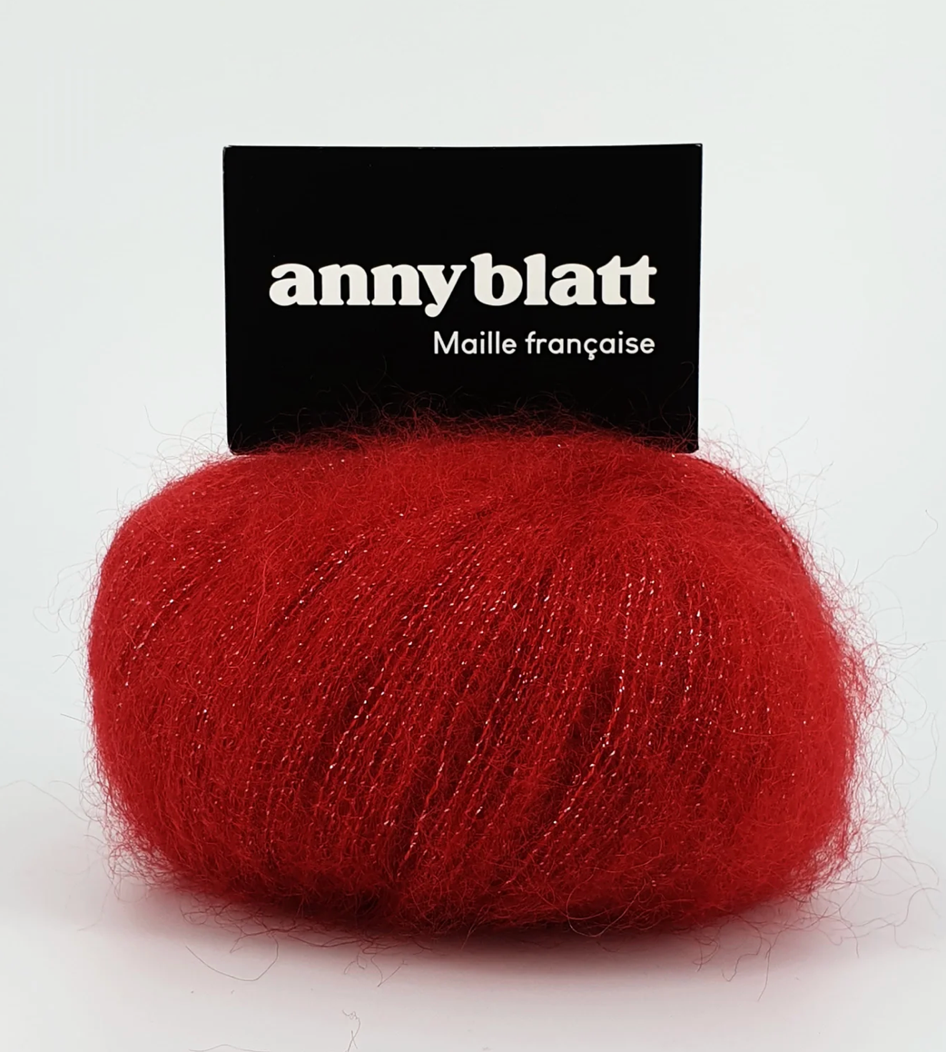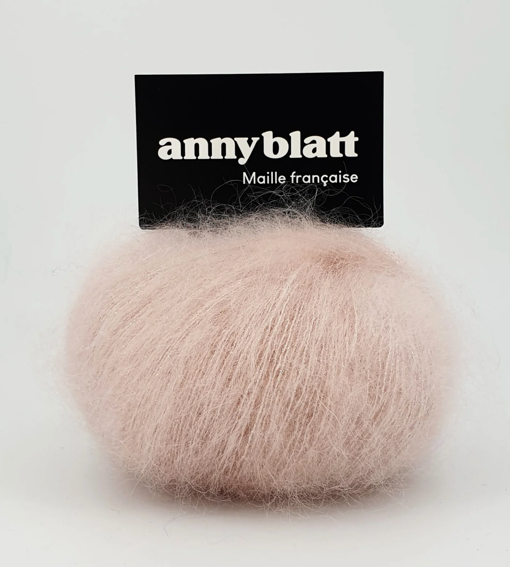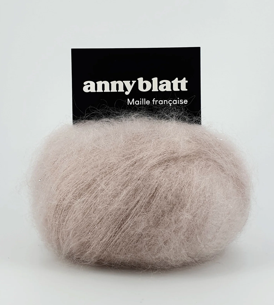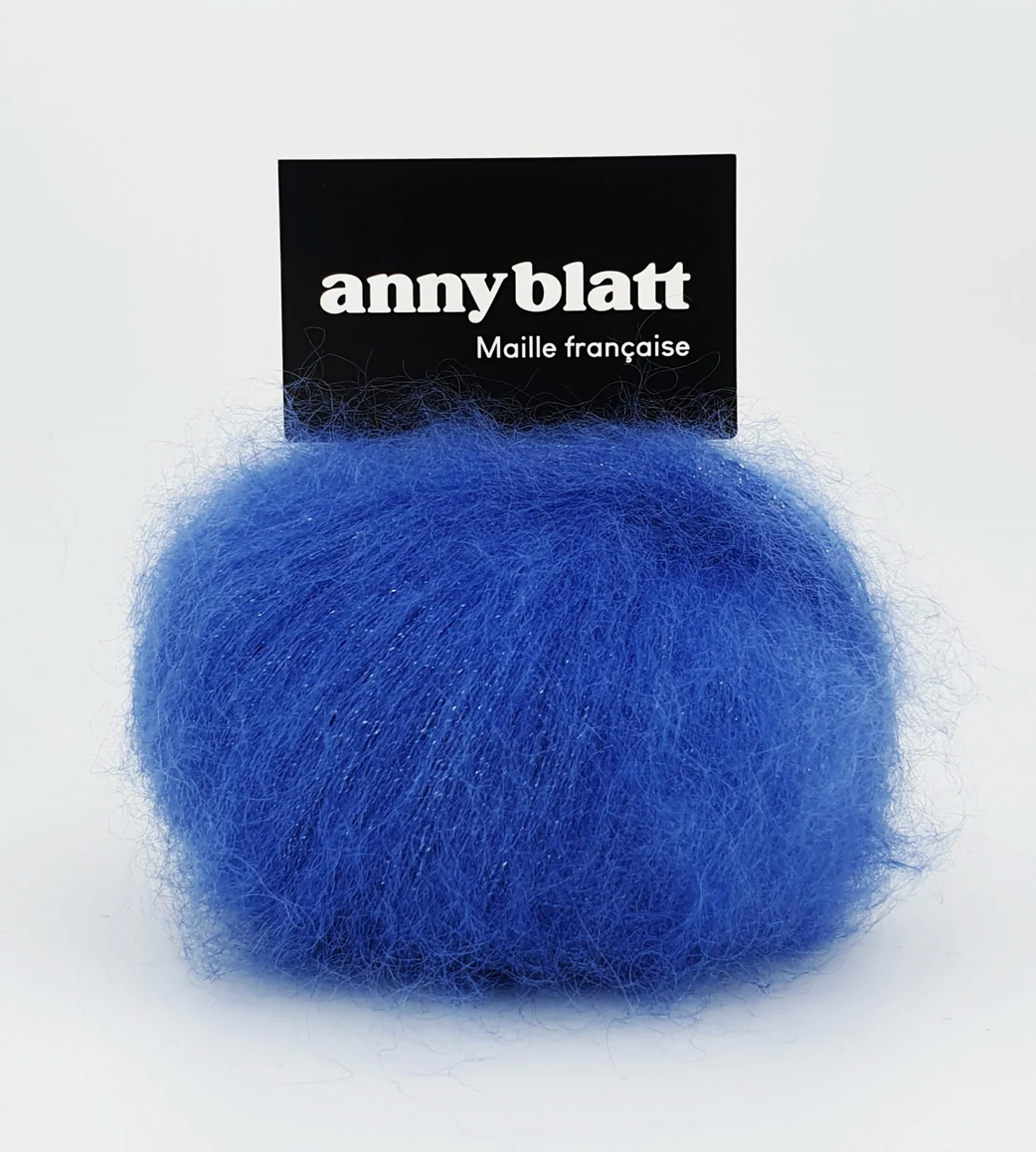 Ce modèle Anny Blatt est ici tricoté en Sirius double, notre fil irisé de super kid mohair et soie. Mais il existe aussi en Angora Douceur si vous préférez un rendu plus luxueux et plus poilu, ou en Honey Moon pour un pull moelleux et doux mais sans fil brillant.