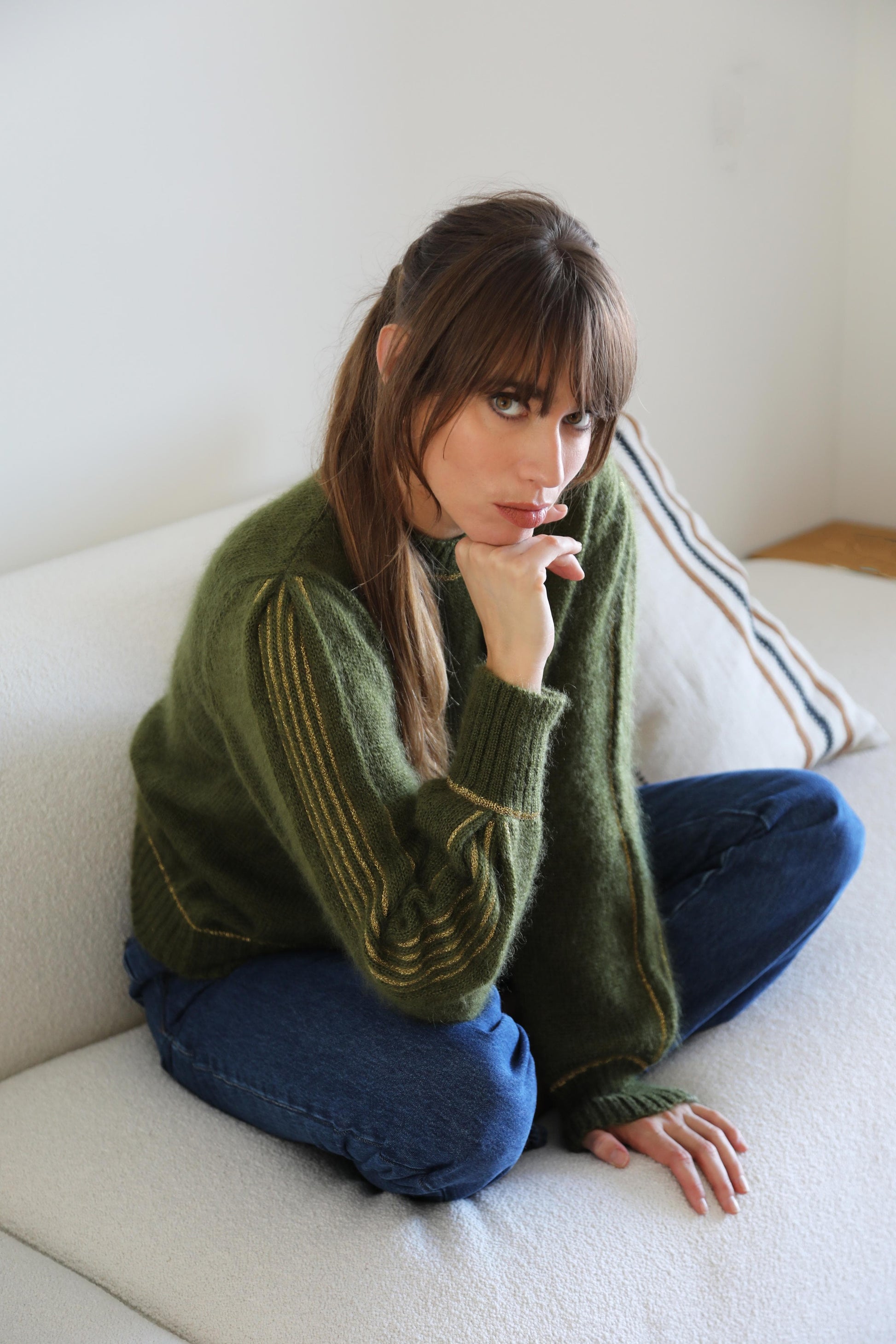 Le pull Alix est un pull à la fois doux, chic et élégant. Ses manches sont finement travaillées et agrémentées d'un soufflet qui se pare de doré le long de la manche, du col et des poignets.