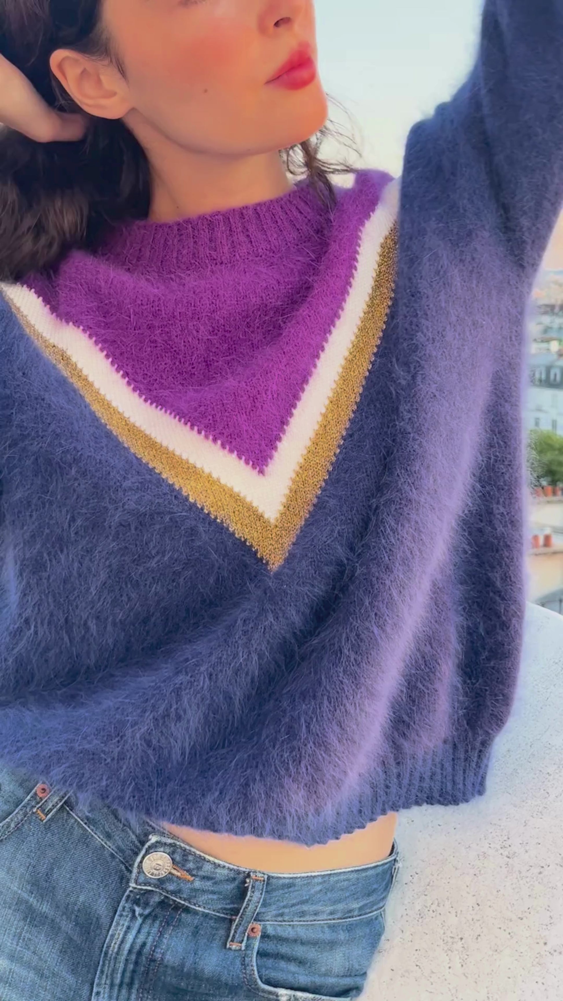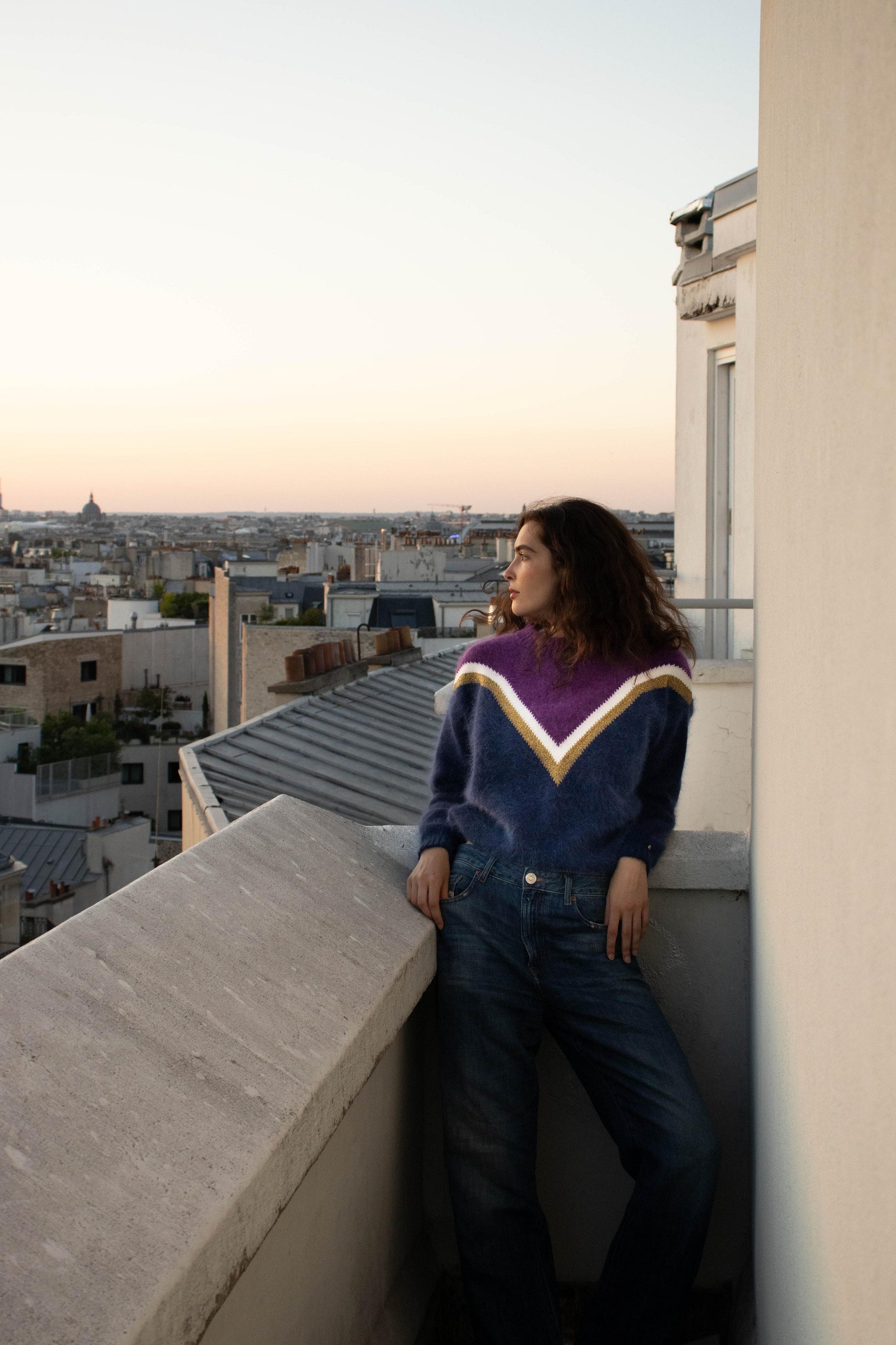 Telle une échappée sur les toits de Paris, ce pull Celeste réinvente l’esprit sport chic. Son motif graphique iconique, se pare cet automne d'un bleu marine profond et de l'éclat gourmand de la mûre. Un pull qui insuffle énergie et poésie à votre vestiaire d’automne.