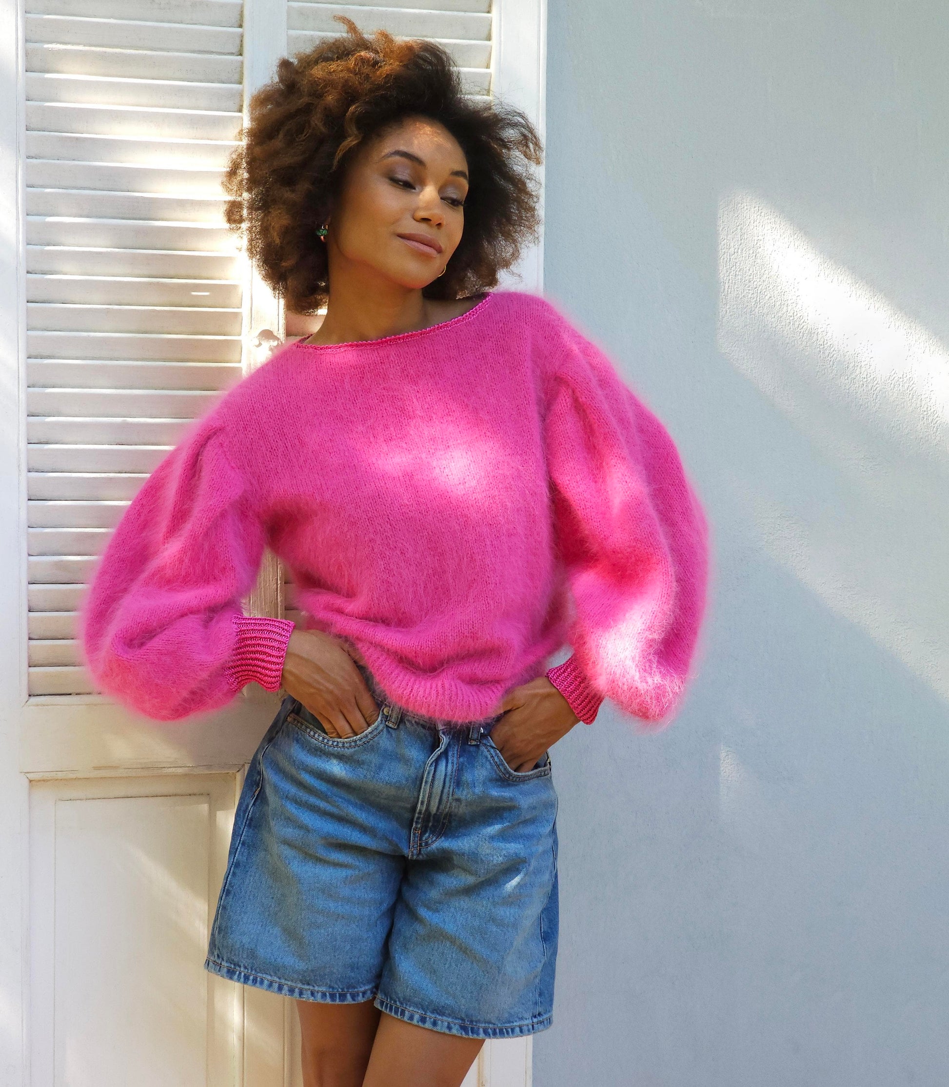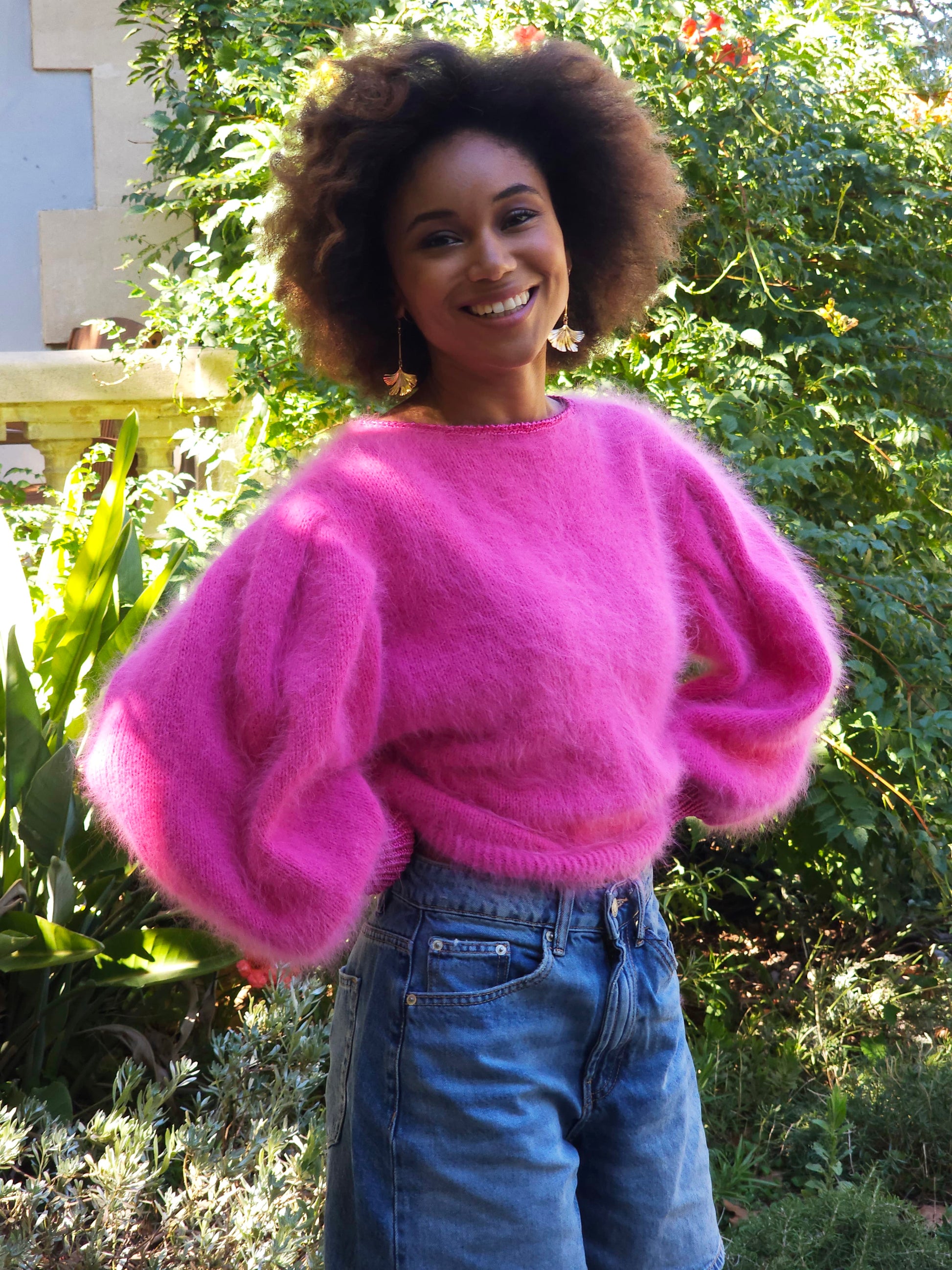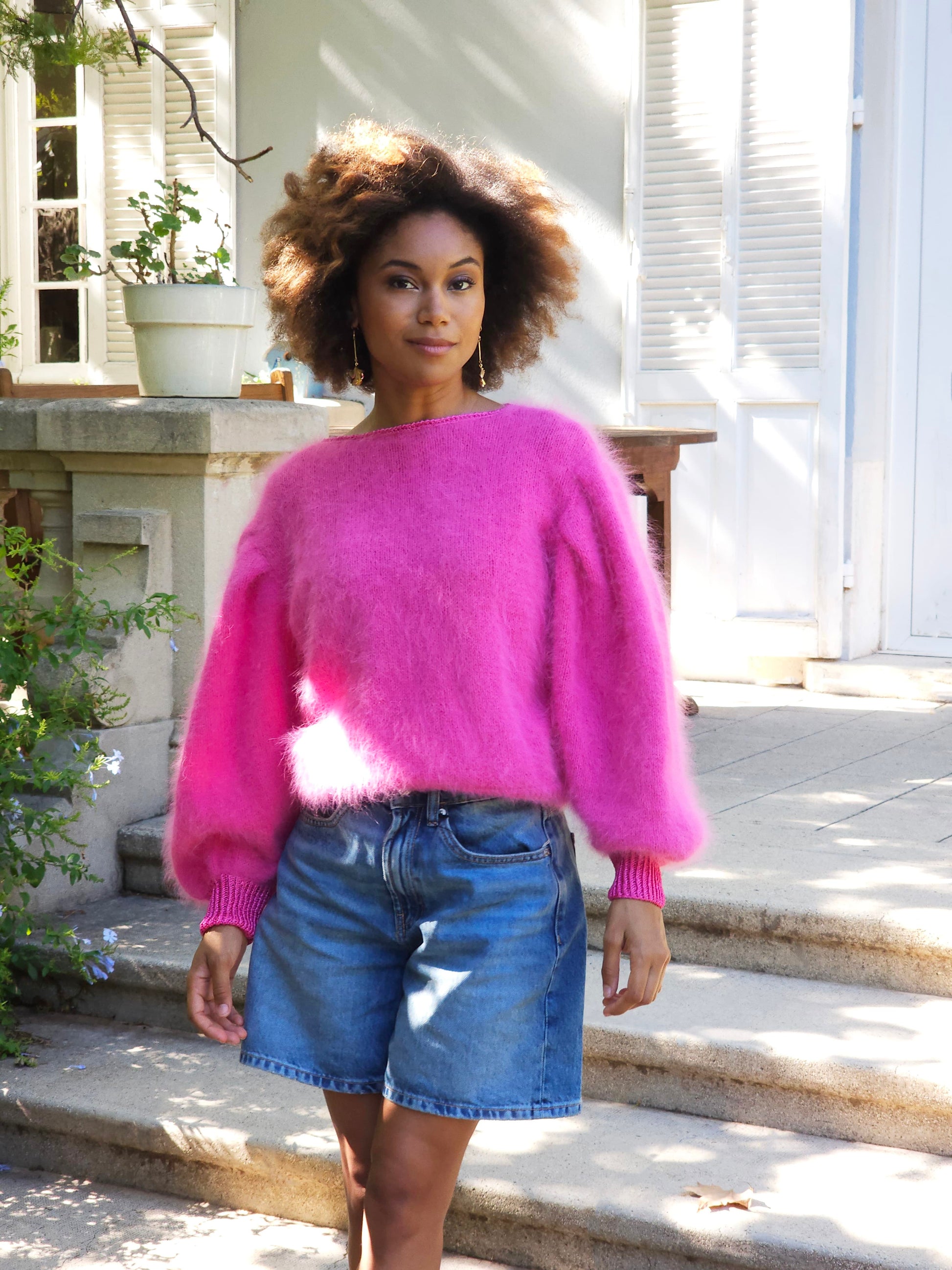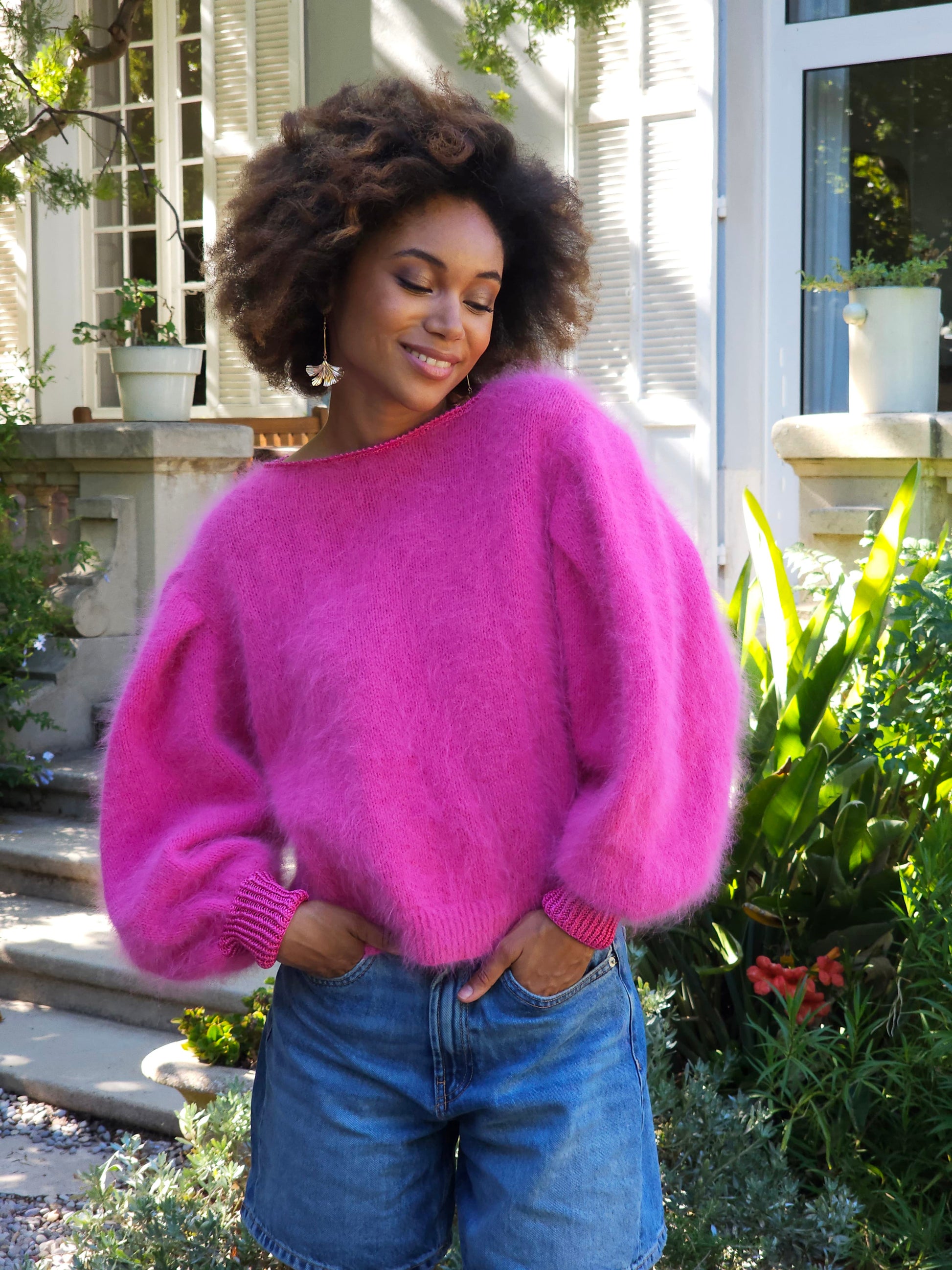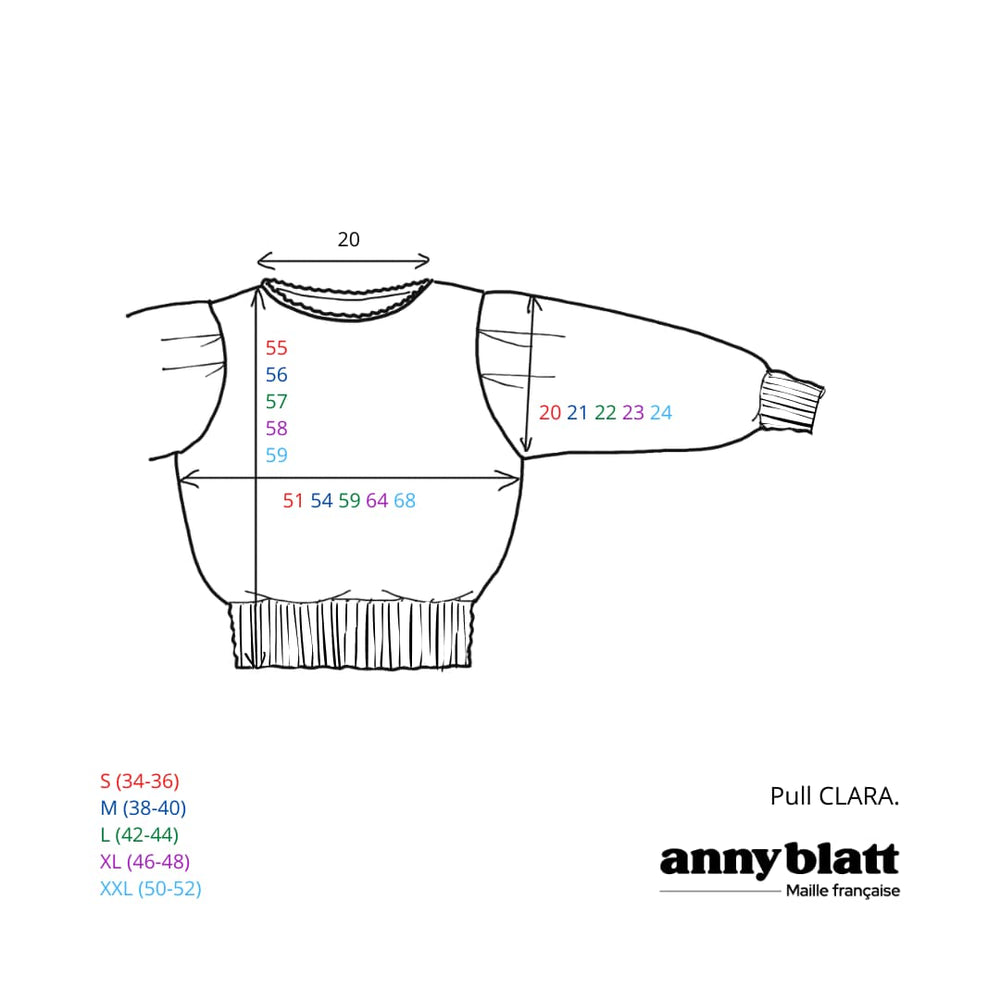 Le pull à tricoter Clara est une petite merveille à tricoter et à porter. Il se réalise assez simplement en jersey en répartissant régulièrement des augmentations pour créer ces manches si particulières.