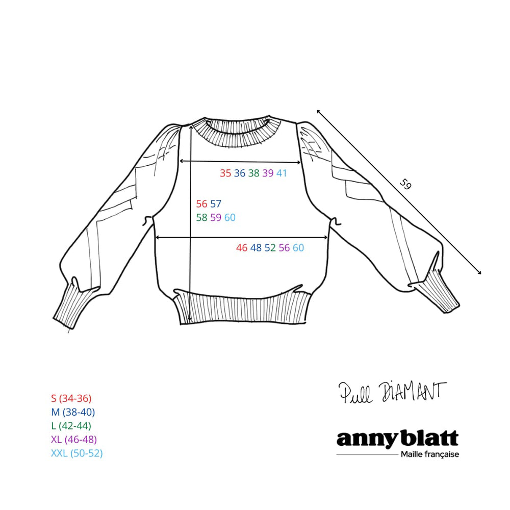 Le pull Diamant se tricote en Honey Moon fil double pour un effet moelleux légèrement fluffy et bien chaud. Ce fil entièrement naturel est composé à 78% de Super Kid Mohair et à 28% de Soie.