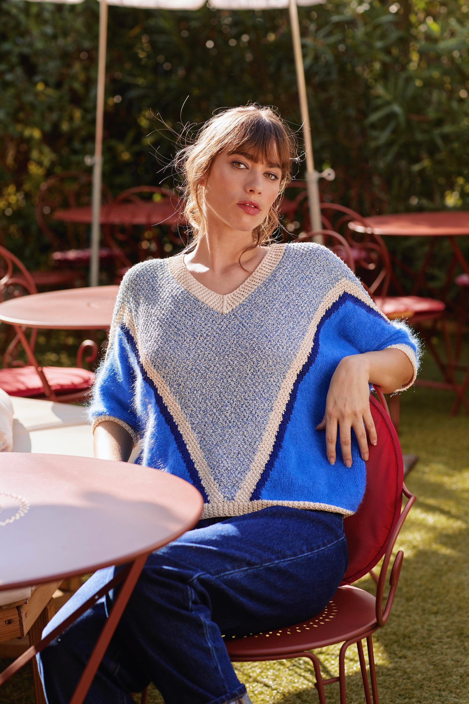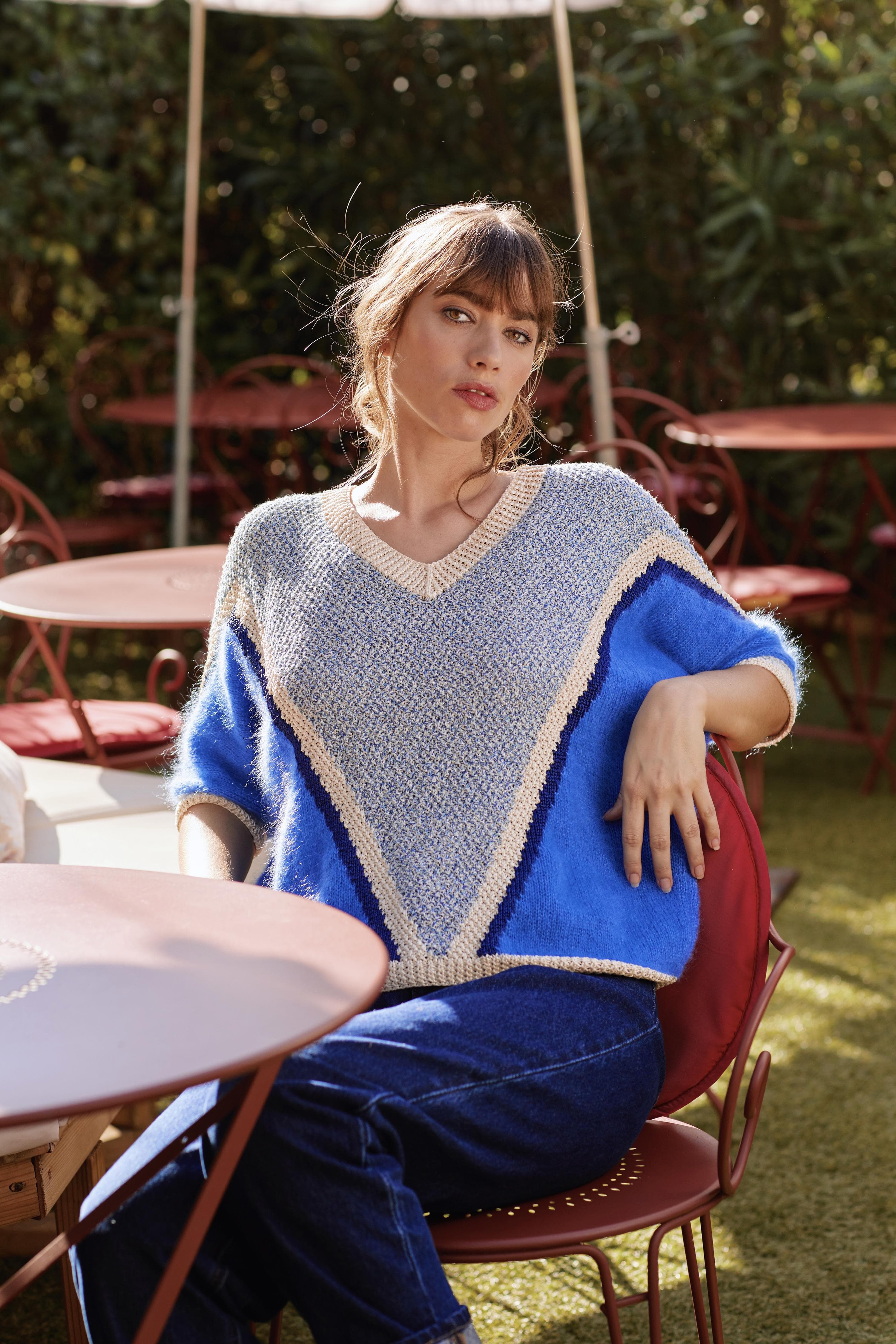 Esther : un petit pull estival qui ne laissera personne indifférent. Inspiré des modèles vintage emblématiques de la marque, son motif géométrique assure un look moderne et confortable.