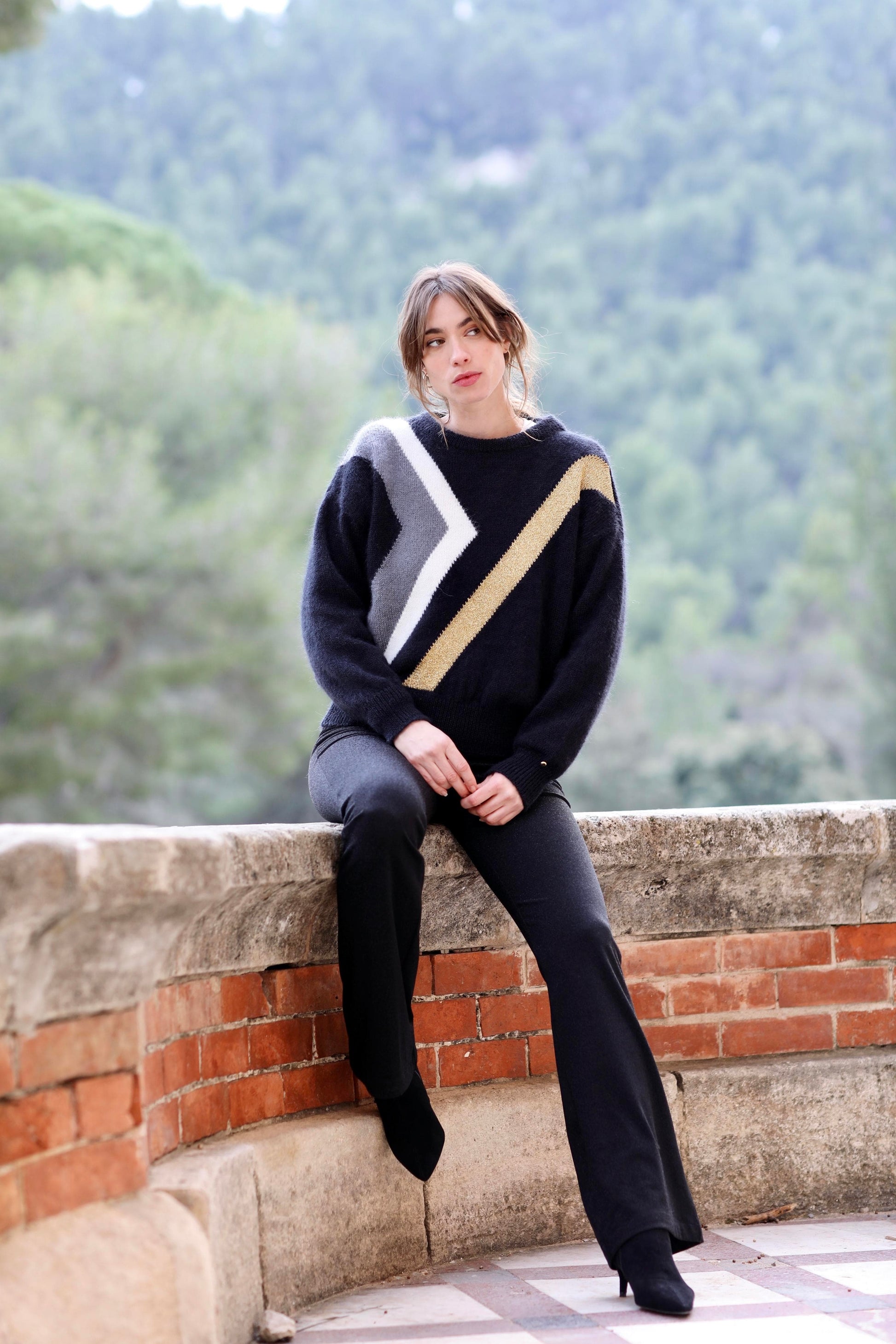 Idéal pour les occasions festives, où sa combinaison de nuances en fait un choix sophistiqué, le pull Inès allie harmonieusement luxe et confort.