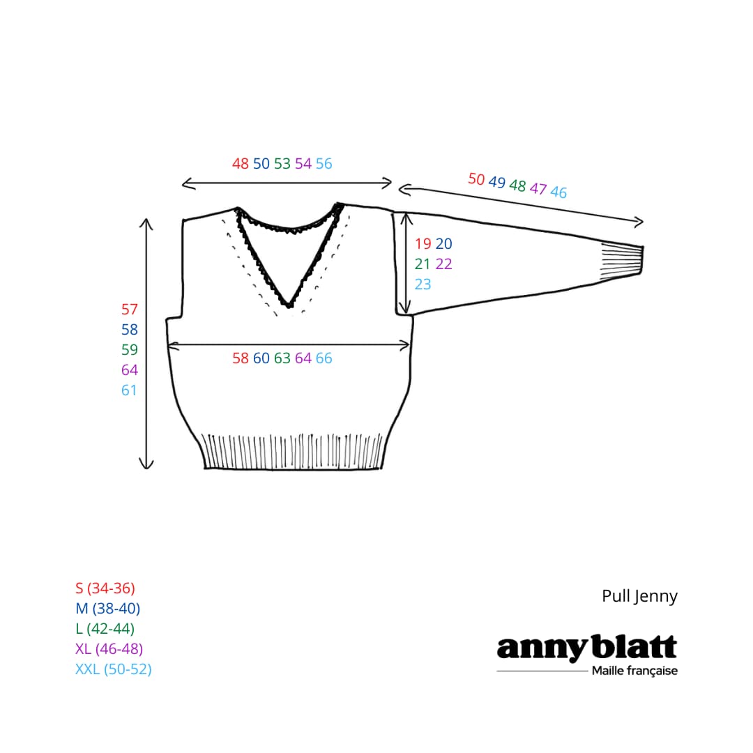 Le pull à tricoter Jenny se décline dans de nombreuses couleurs. Pour un look ultra chic, préférez le noir ou le Naturel, mais vous pouvez également opter pour un look plus pétillant avec nos couleurs éclatantes d'Angora comme la couleur rose Sorbet ! A vos aiguilles !