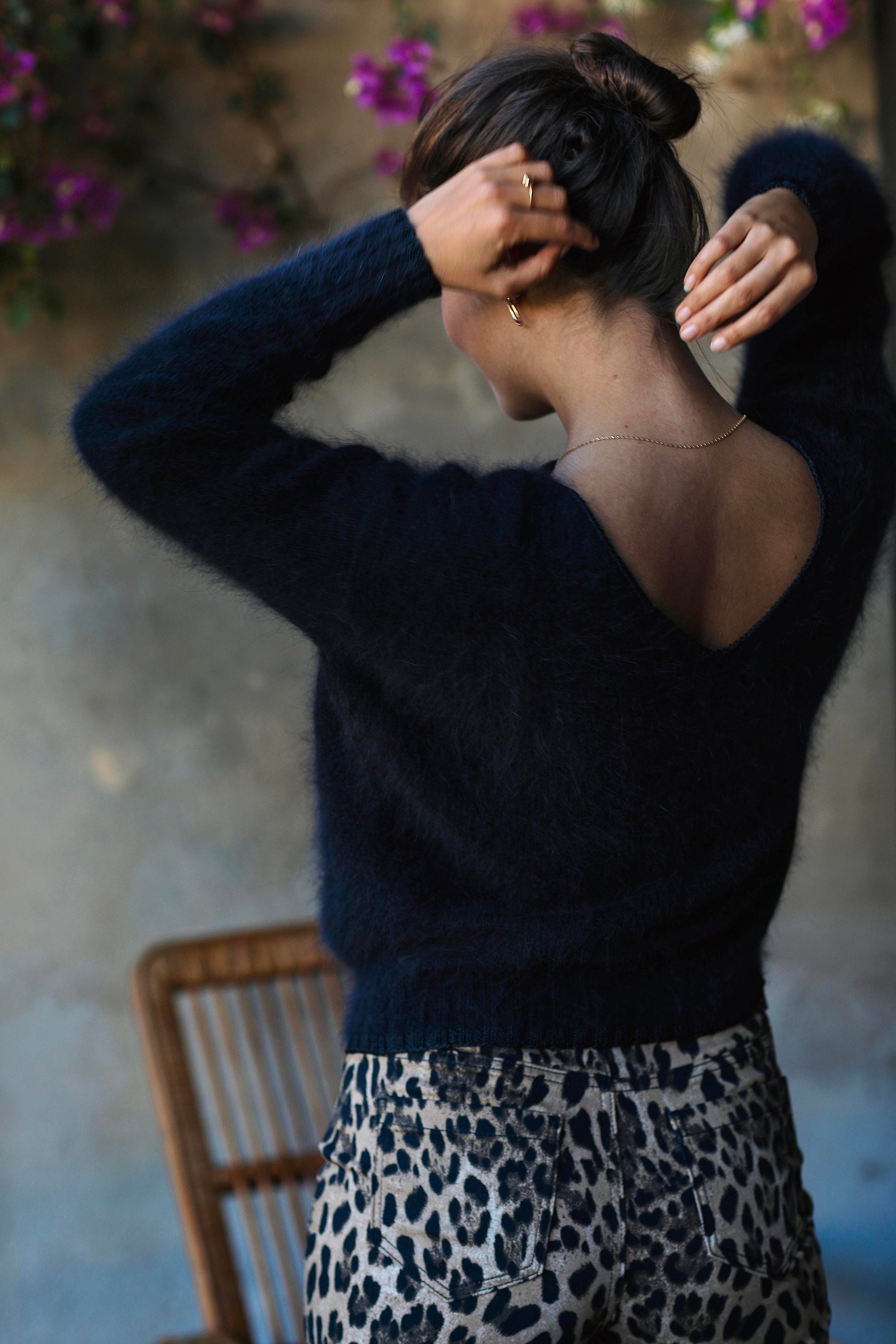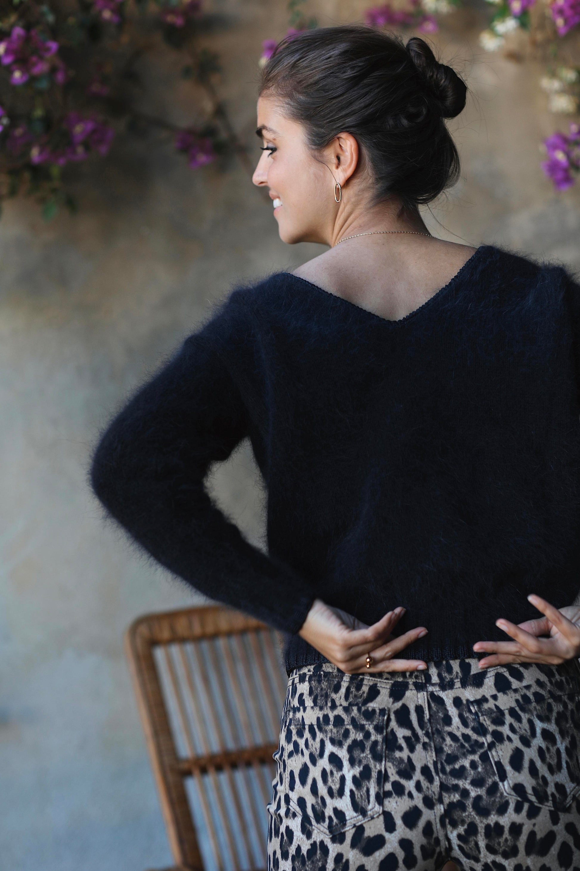 Pour sublimer le poilu unique de l'Angora, le pull Jenny est travaillé en ton sur ton avec le fil ruban Victoria. Ainsi, l'extrémité des poignées est légèrement satiné ainsi que le col qui lui, est travaillé au crochet. Un rendu unique signé Anny Blatt qui rend ce petit pull intemporel sexy juste ce qu'il faut.