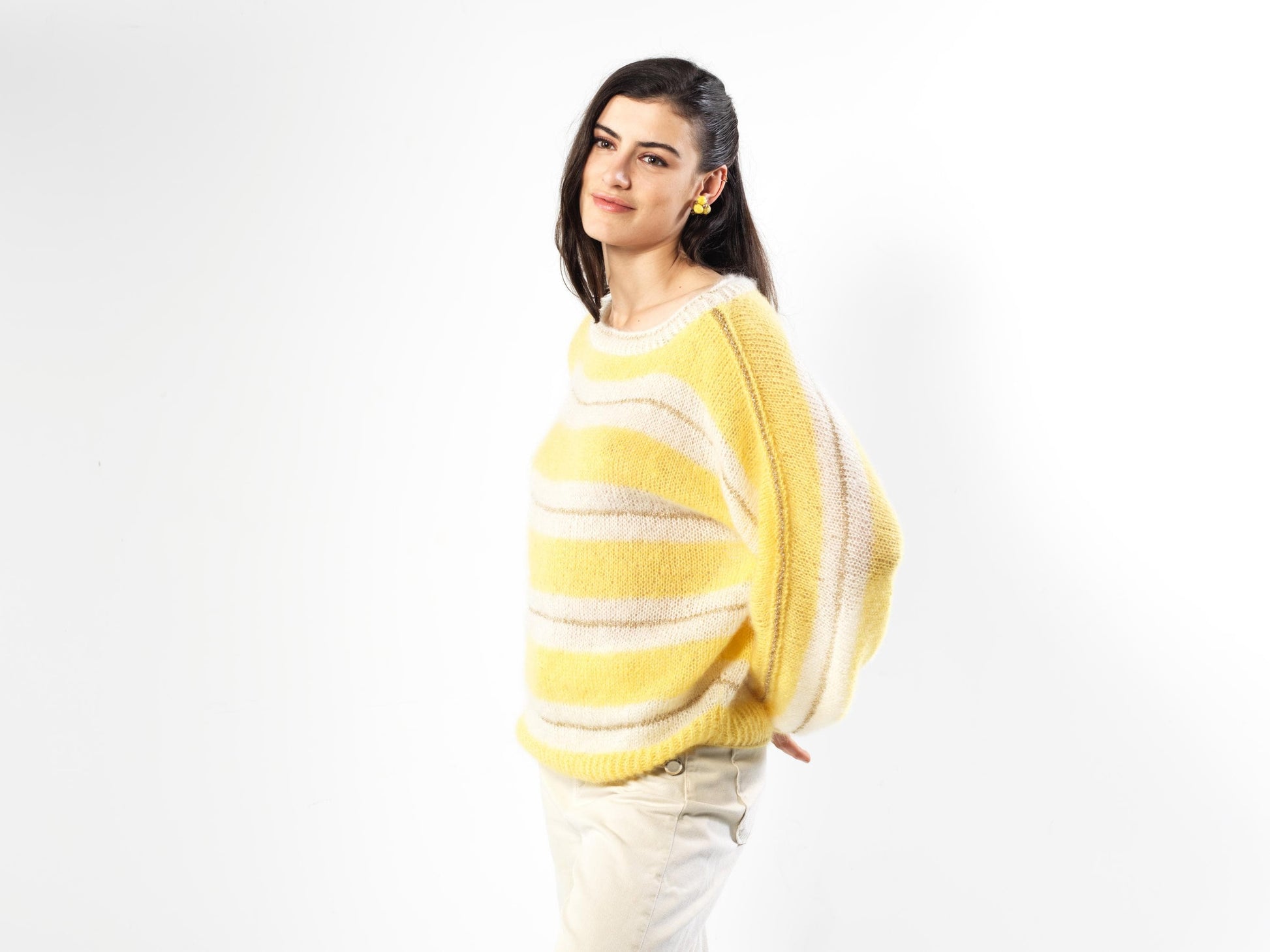 Le pull Judith est une petite merveille pour l'arrivée des beaux jours. Il est ample et léger. Les rayures viennent rythmer l'allure du pull pour un look vitaminé et affirmé.