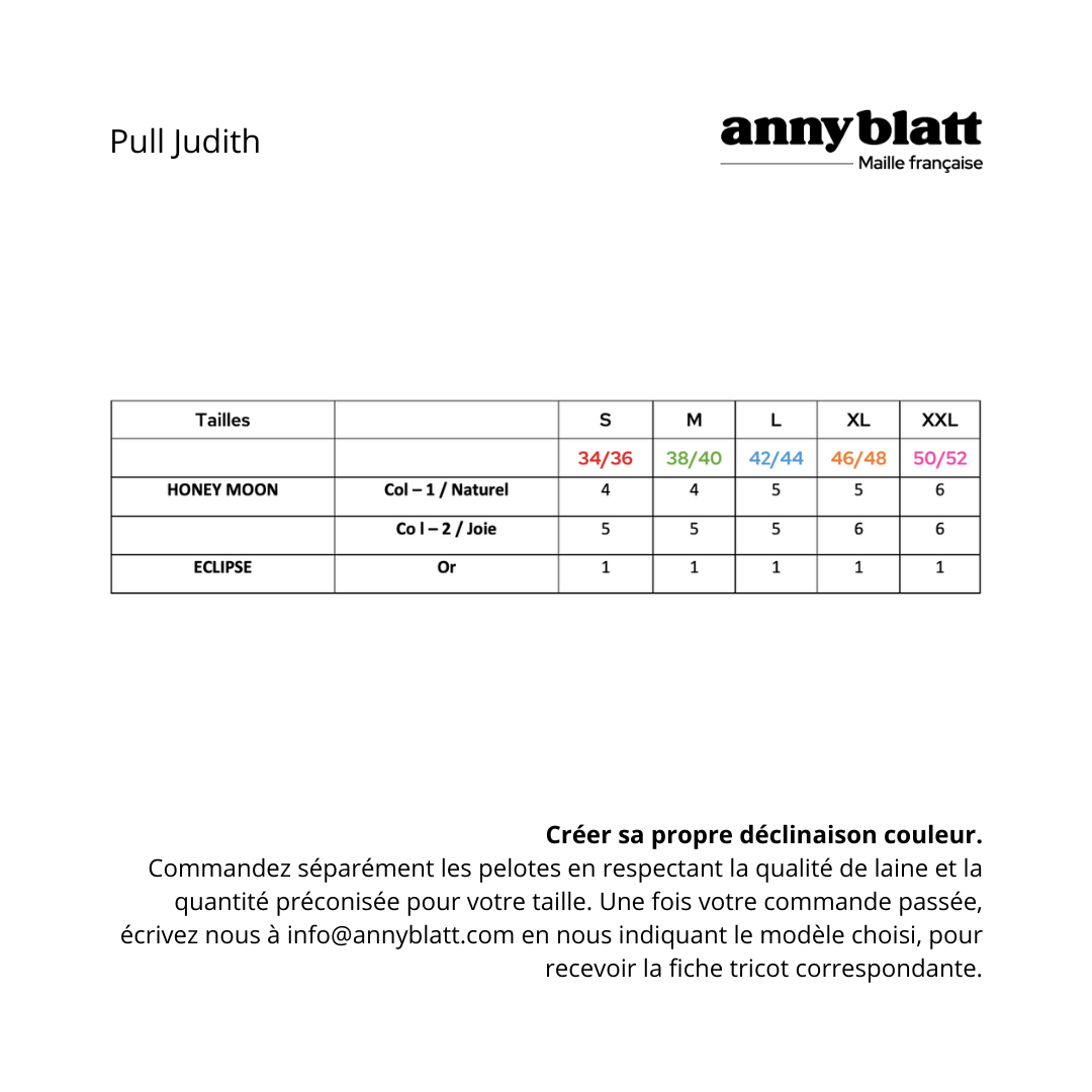 - XXL = 12 pelotes de Honey Moon + 1 pelote Eclipse