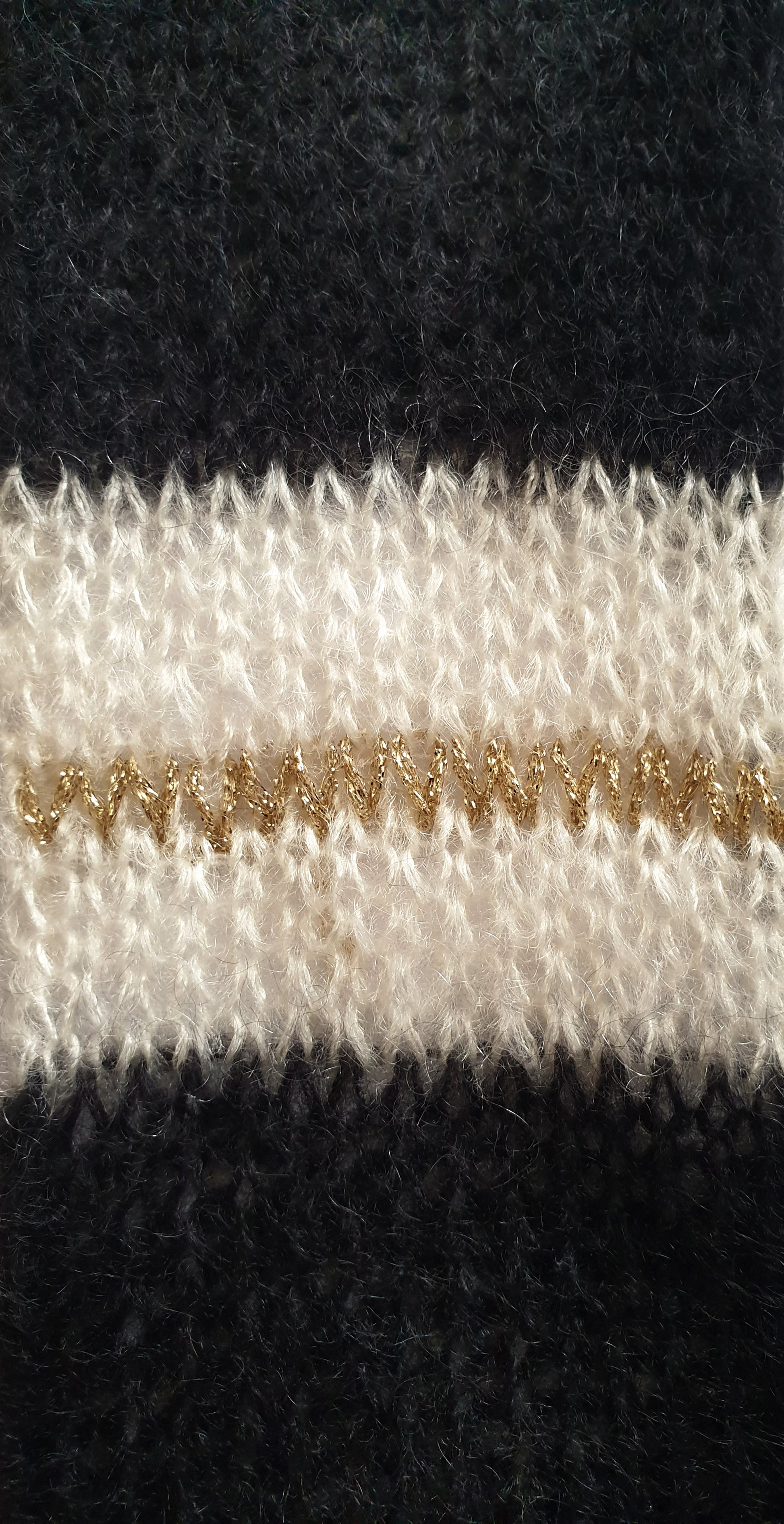 - Fil Super kid Mohair et soie Honey Moon tricoté en double, fines rayures brillantes Éclipse