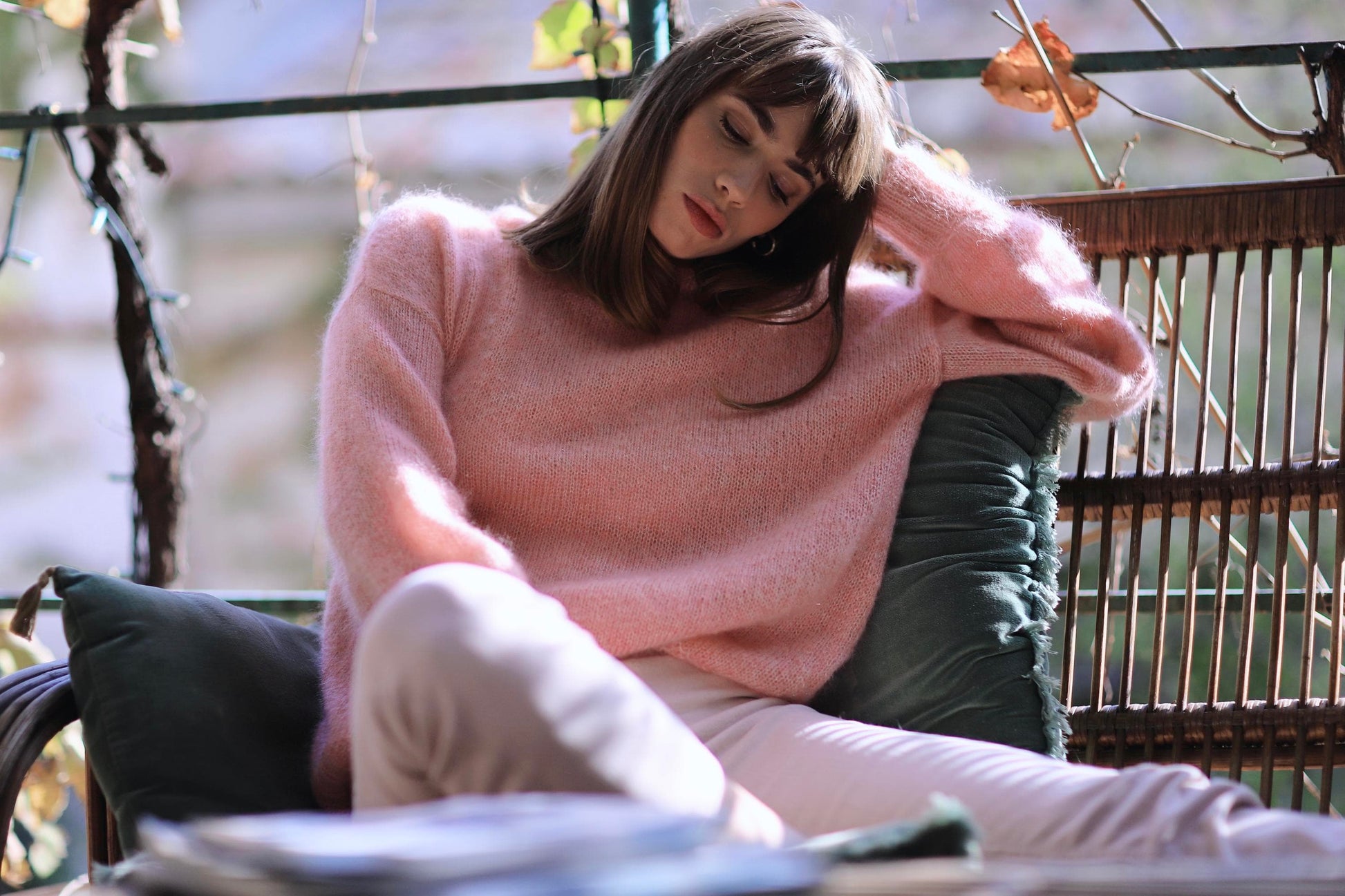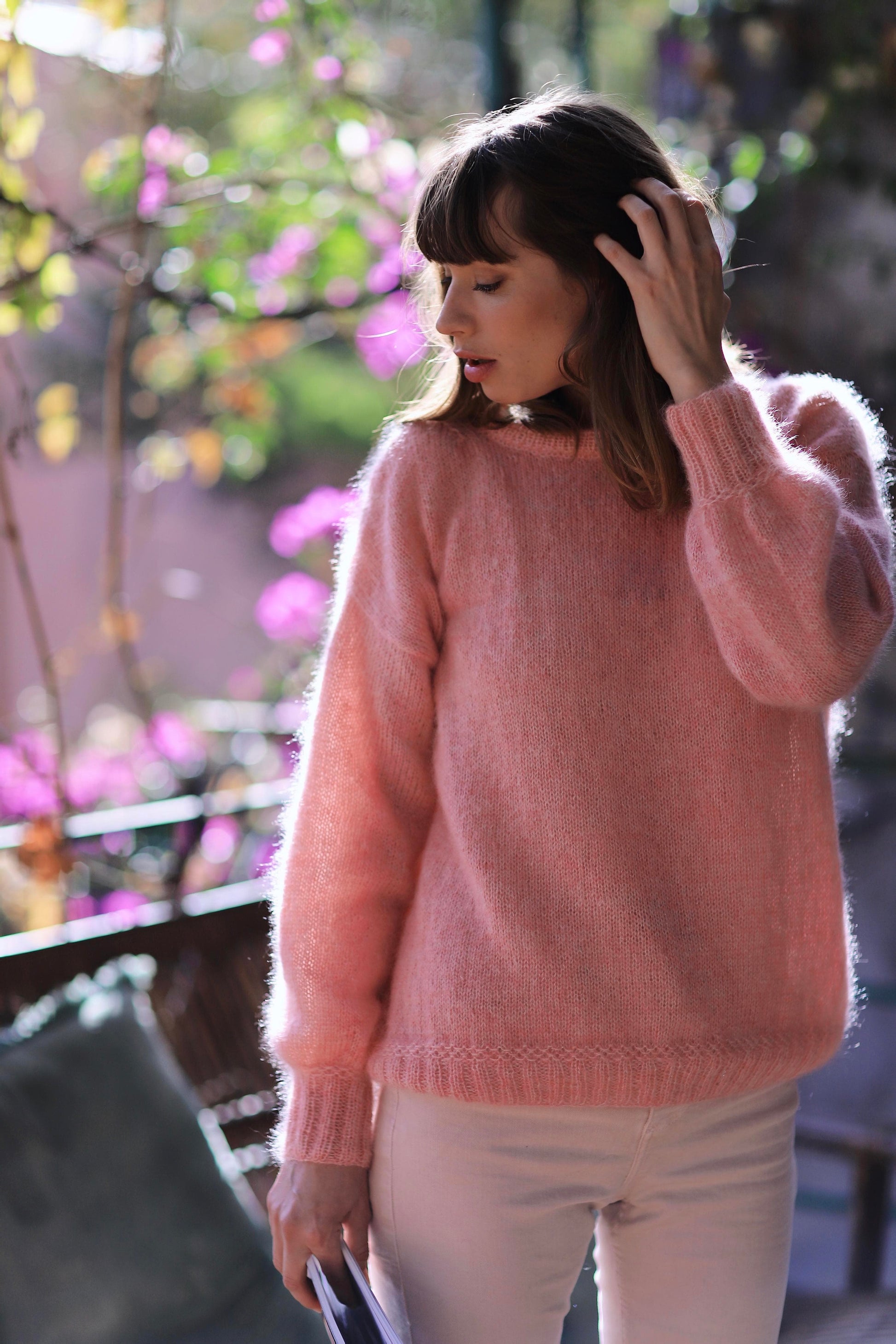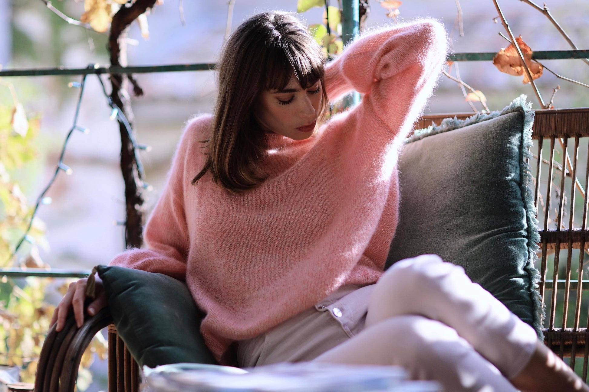 Ainsi, le pull Agate est tricoté en 2 fils mélangés, le fil Sirius irisé associé au fil Honey moon, notre fil précieux en super kid mohair et soie. L'association de ces 2 fils lui confère ses couleurs uniques à l'image de ce rose bonbon.
