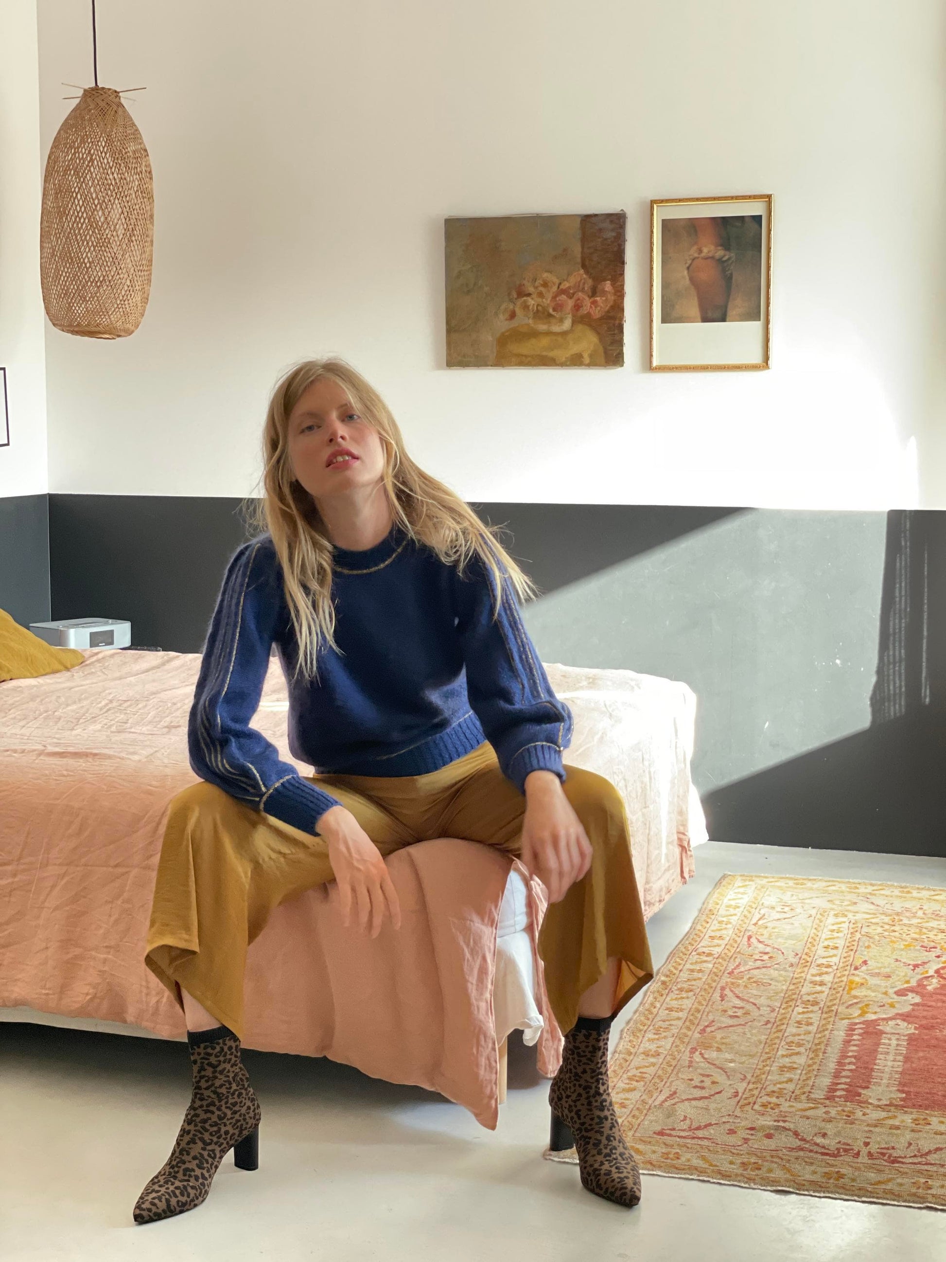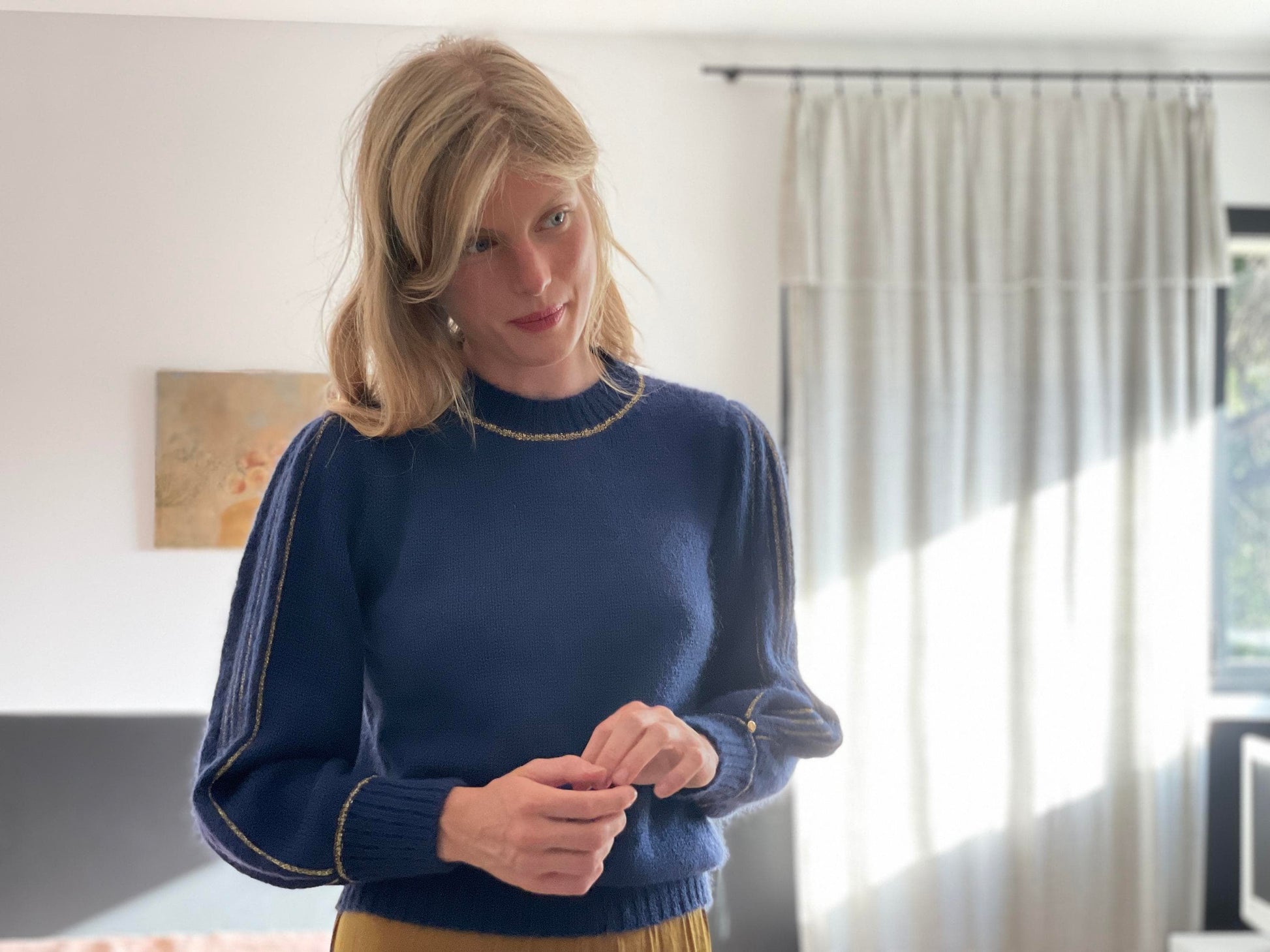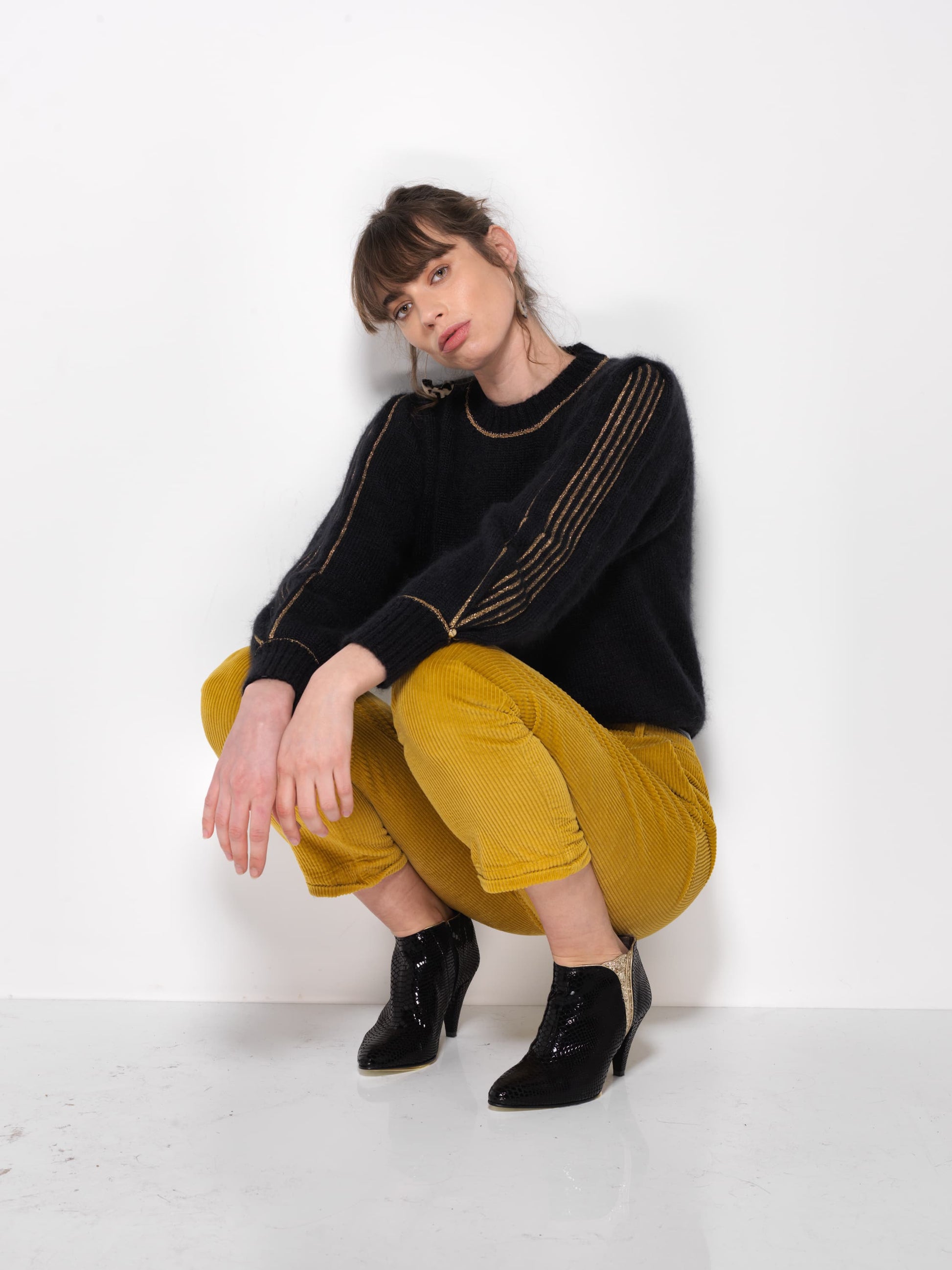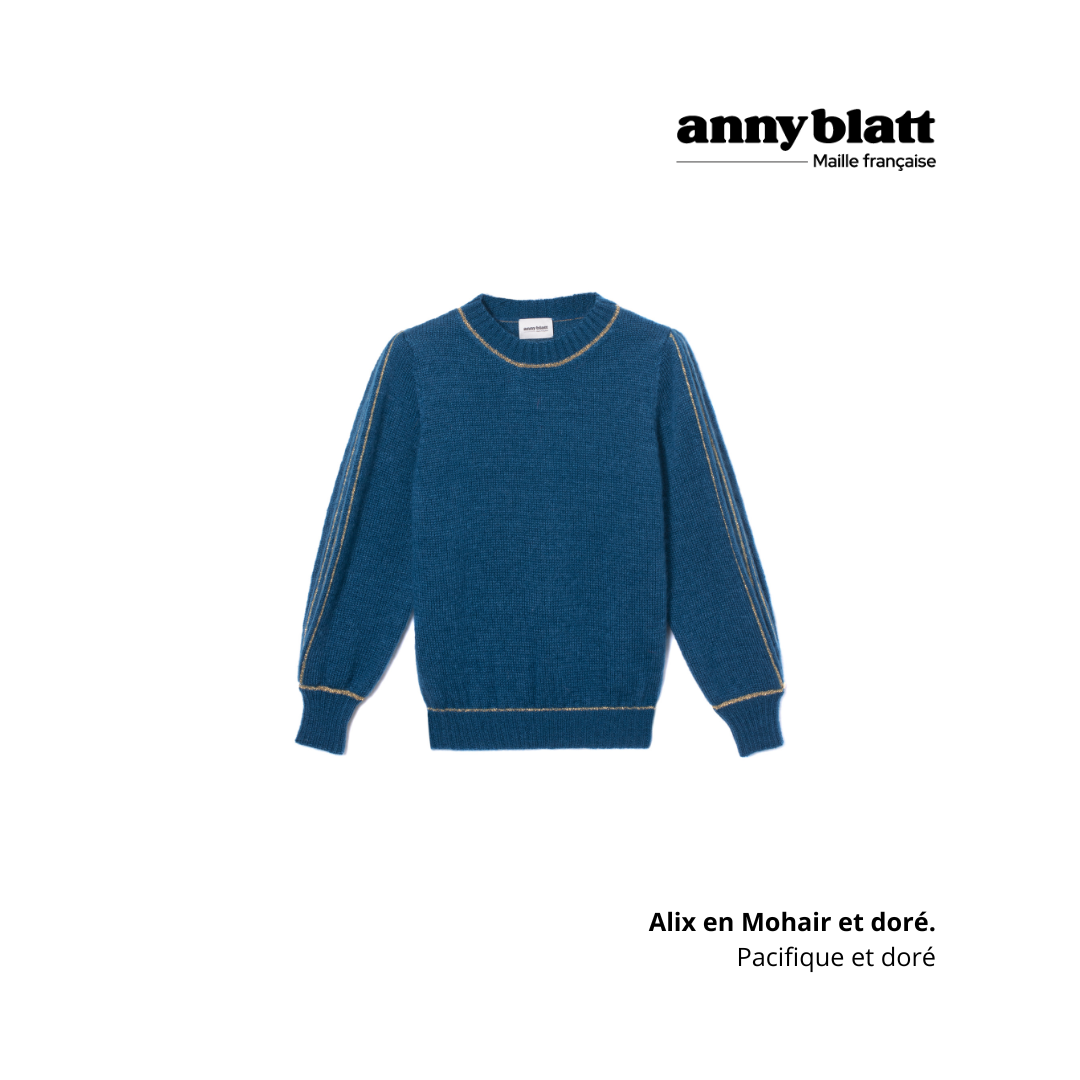 Le pull Alix est un pull à la fois doux, chic et élégant. Ses manches sont finement travaillées et agrémentées d'un soufflet qui se pare de doré le long de la manche, du col et des poignets.