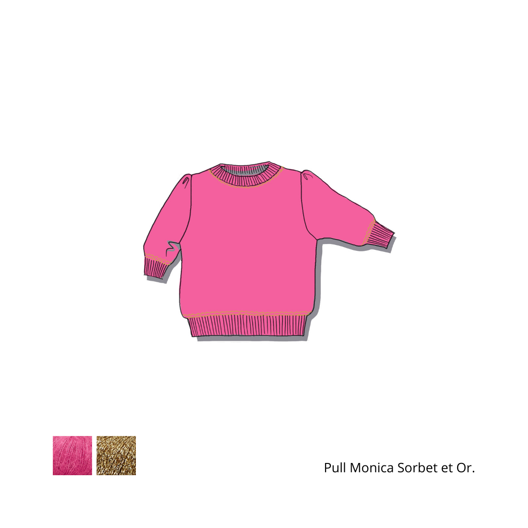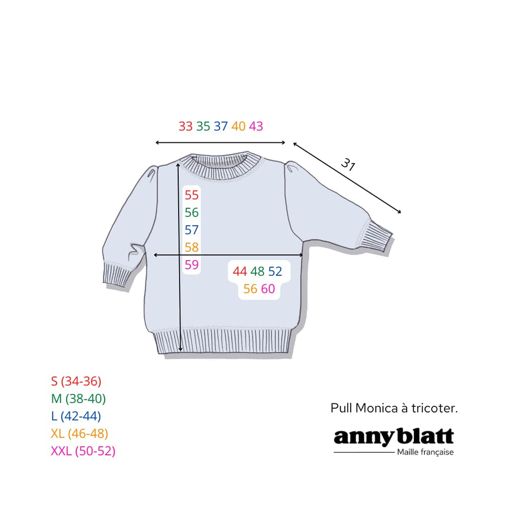 Attention, le fil brillant est doré ou argent en fonction des couleurs. Si vous voulez changer, commandez séparément les pelotes en respectant les quantités préconisées pour votre taille, puis écrivez-nous à info@annyblatt.com pour recevoir la fiche tricot.