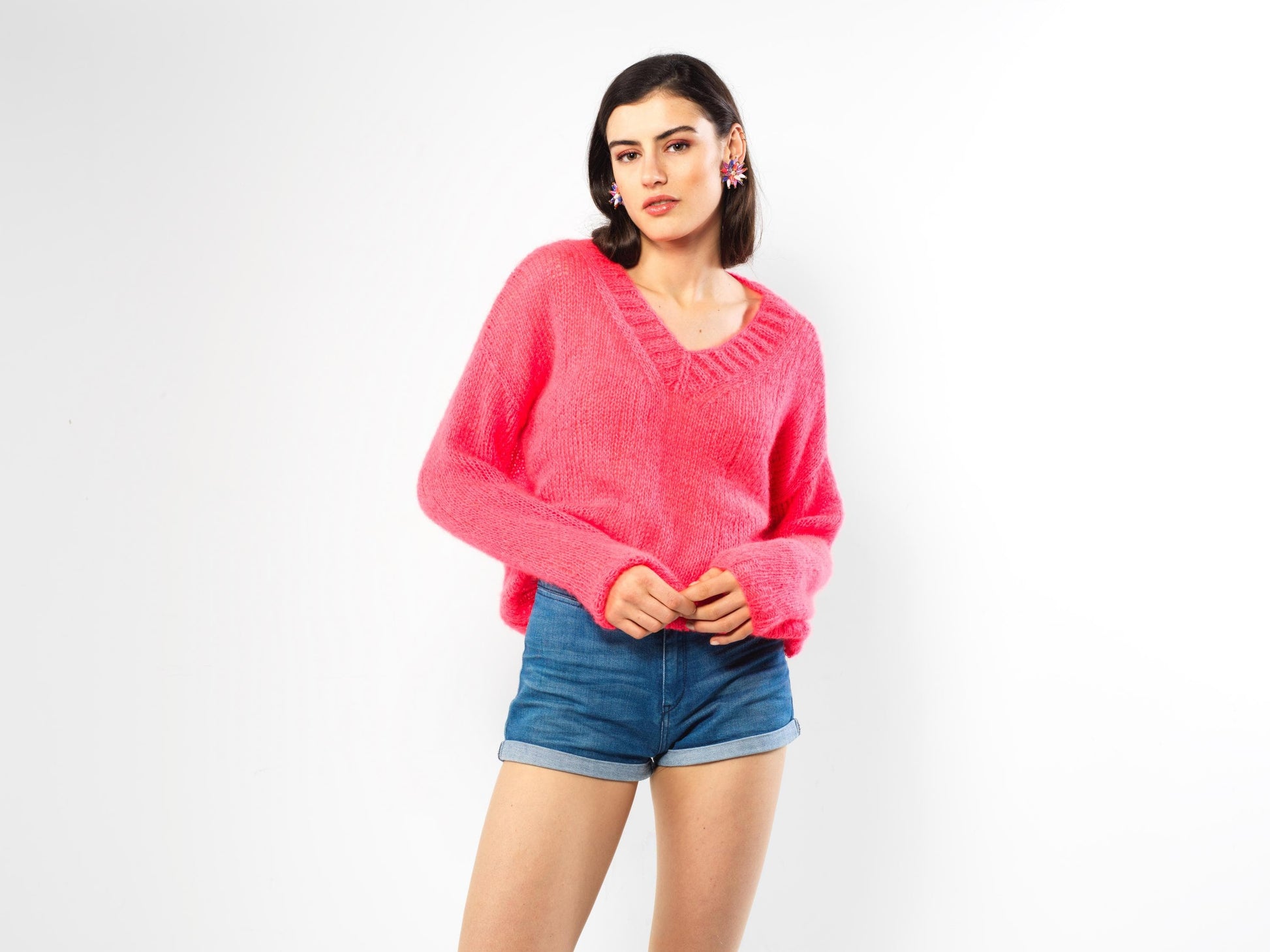 Sa forme est flatteuse pour toutes les morphologies : il se porte droit hiver comme été. L'encolure en côtes 2/2 est voulue assez large.