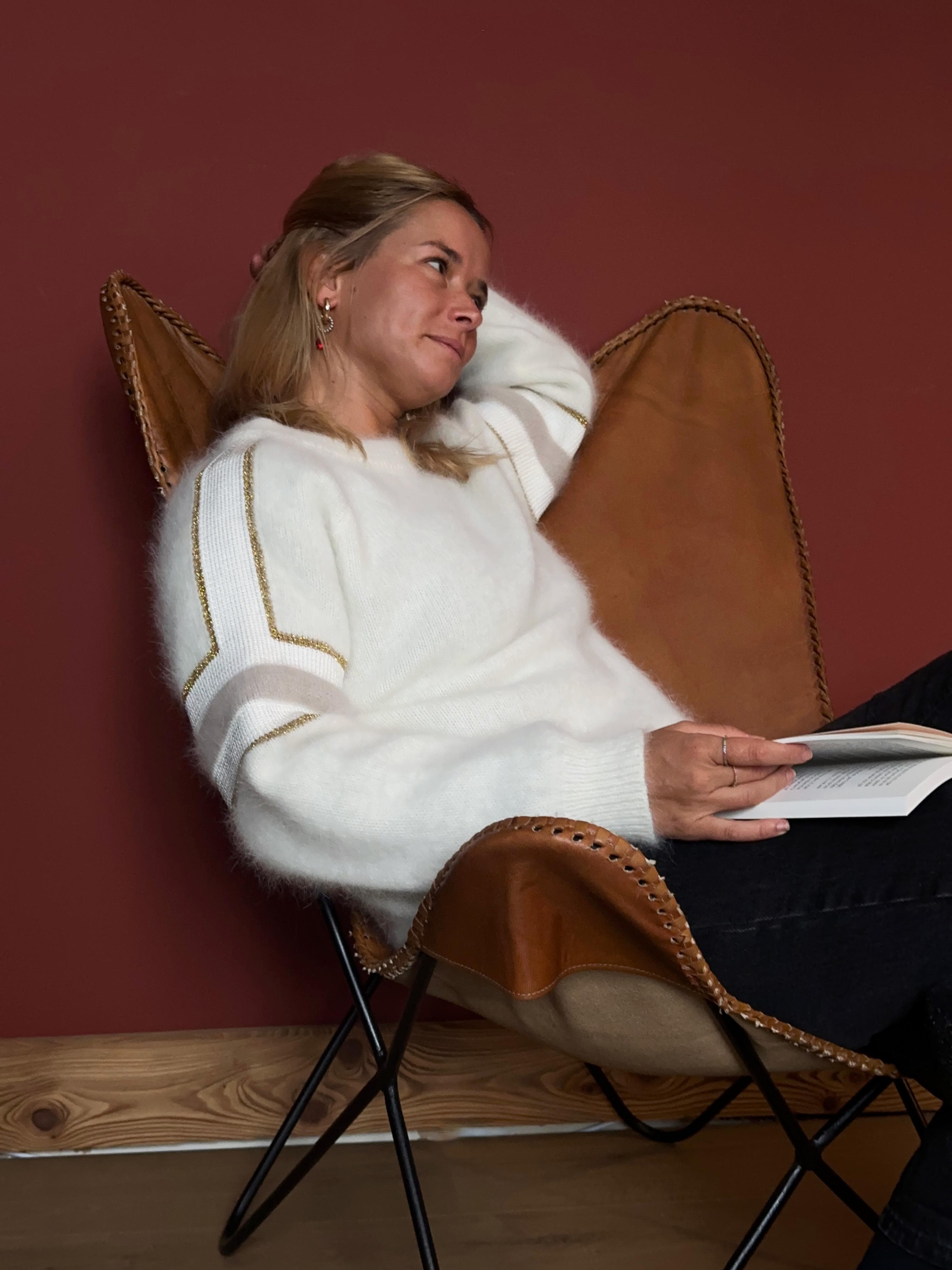 Conçu et fabriqué entièrement en France, ce modèle met à l’honneur le savoir-faire local. Depuis le fil en Angora, qui compose en grande majorité ce pull, jusqu’aux finitions, chaque étape de fabrication est réalisée ici, en France.