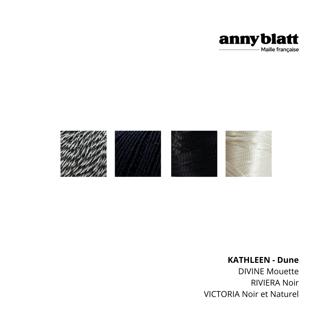 Ce modèle d'accessoire Anny Blatt joue avec les matières en utilisant des fils satinés et fantaisie qui apportent relief et brillant.