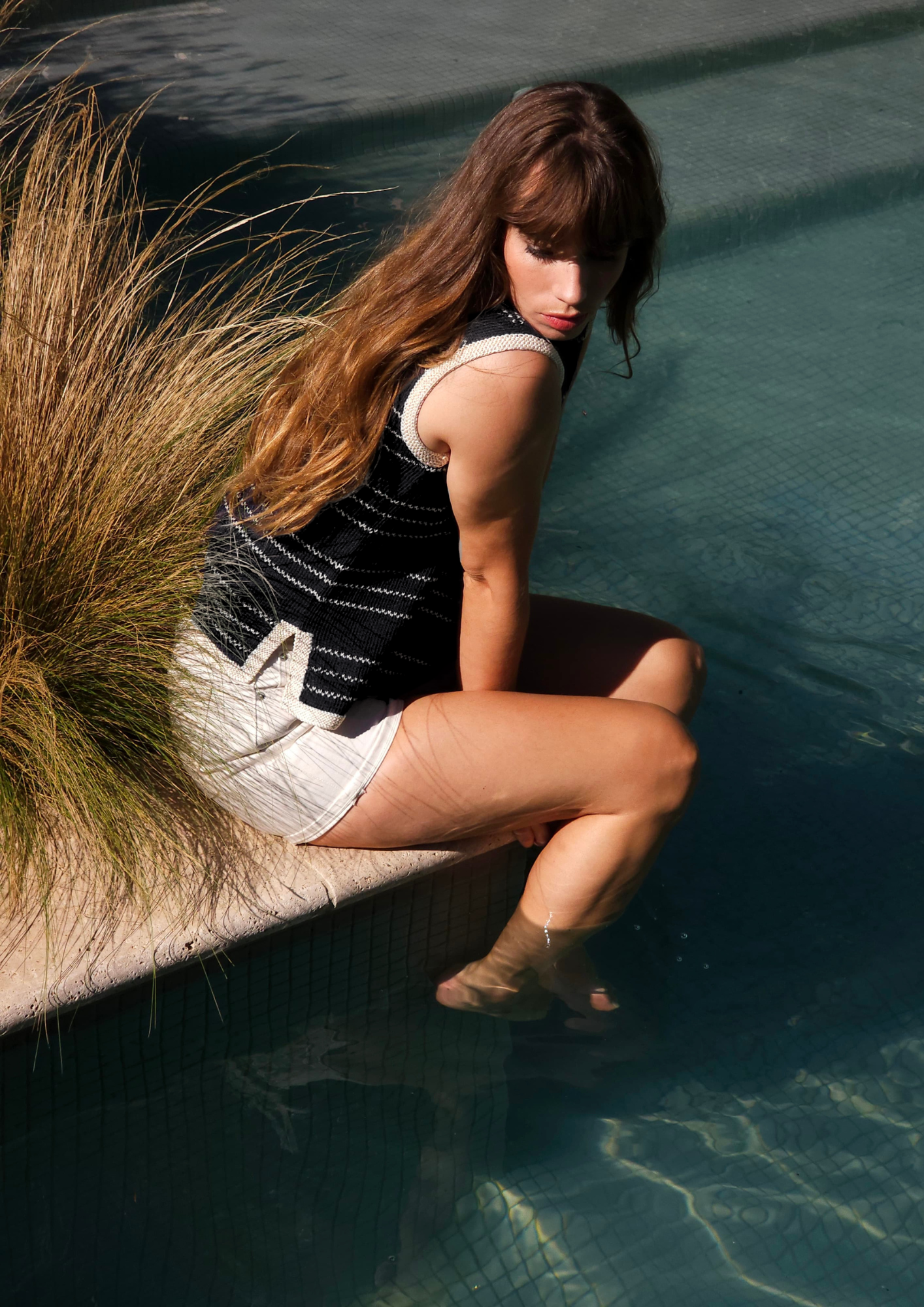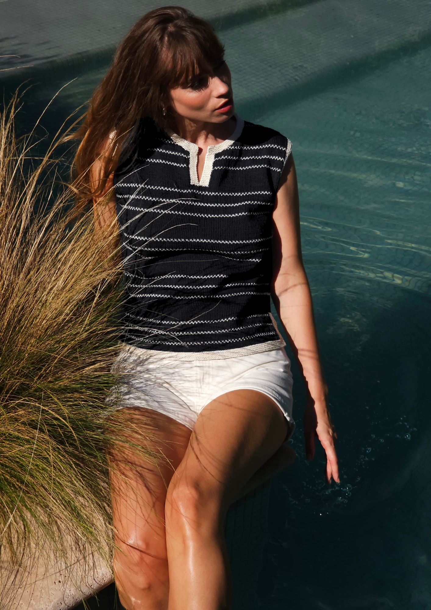 Avec ses fentes sur les côtés et ses rayures originales et fines, ce top a un petit look marin presque vintage qu'on adore.